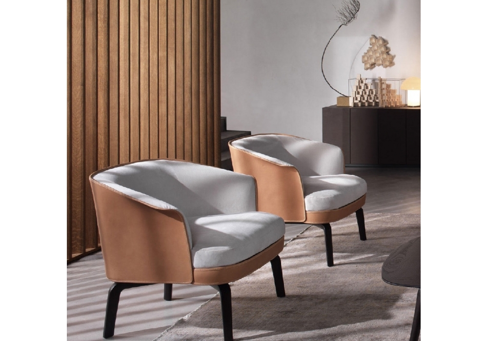 The external shell is upholstered in Cuoio Saddle® Extra leather, whereas the internal part is in Pelle Frau® leather or fabric, embellished with beautiful top-stitching in contrasting thread.