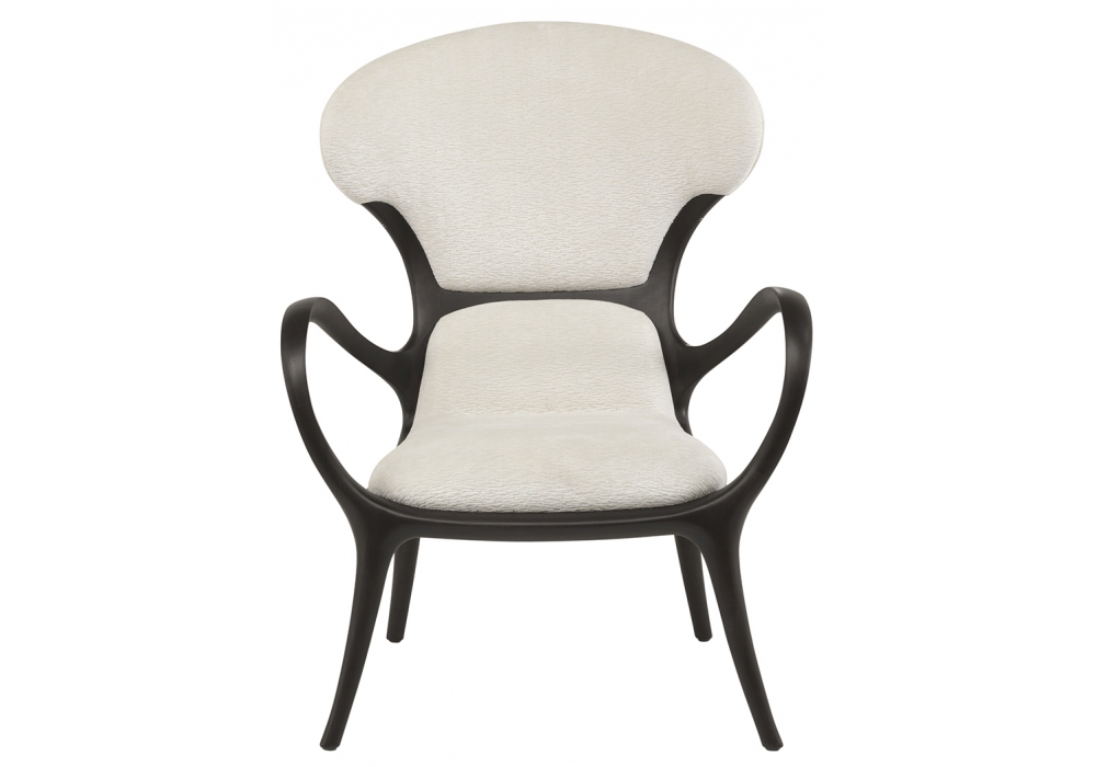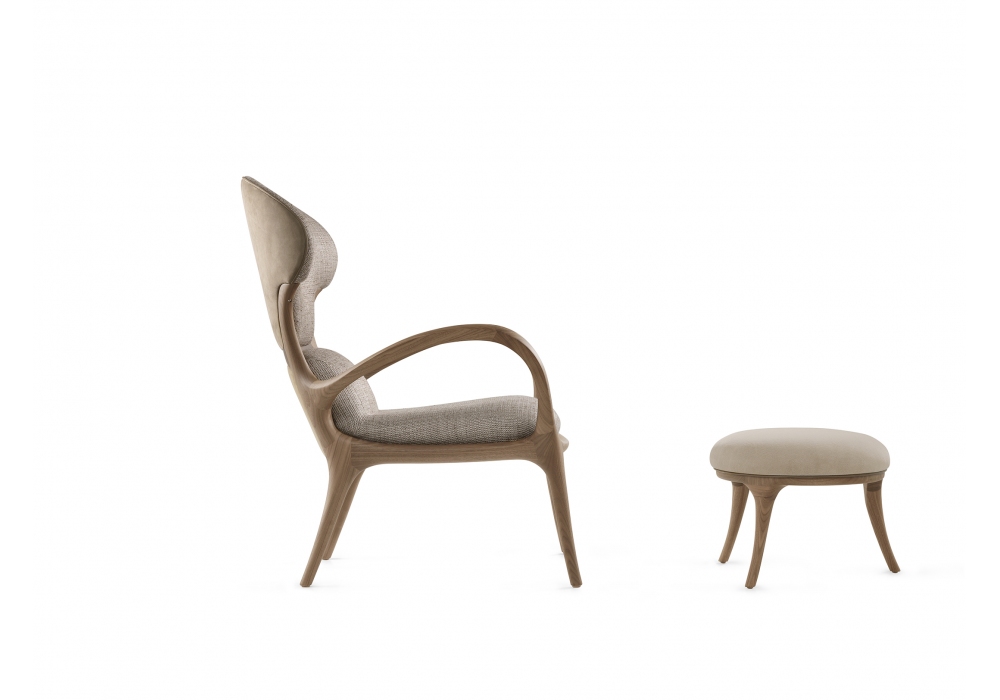 Saturn diseñado por Roberto Lazzeroni para Ceccotti Collezioni es un sillón de nogal americano macizo. Asiento y reposacabezas en contrachapado curvo acolchado y tapizado en tela, piel o piel natural.