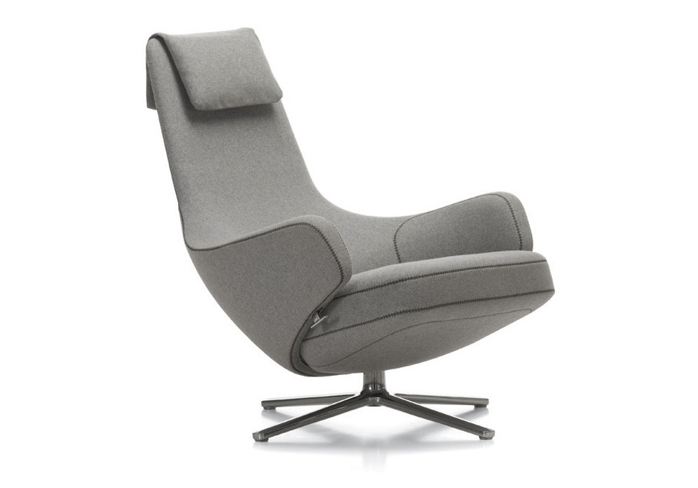 Desarrolladas conjuntamente por Vitra y Antonio Citterio, las lounge chairs Repos y Grand Repos introducen un nuevo nivel de confort y flexibilidad en el hogar: con su generoso acolchado, brazos acogedores y alto respaldo, estas elegantes lounge chairs giratorias ofrecen una imagen de supremo confort.