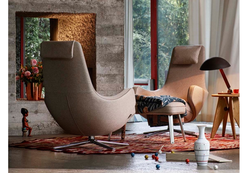 El sillón de orejas Grand Repos está disponible con tapicería tela o cuero. Su característica cabecera invita a recostarse y transmite una agradable sensación de seguridad. Sus costuras decorativas le dan un toque claramente contemporáneo, casi artesanal.