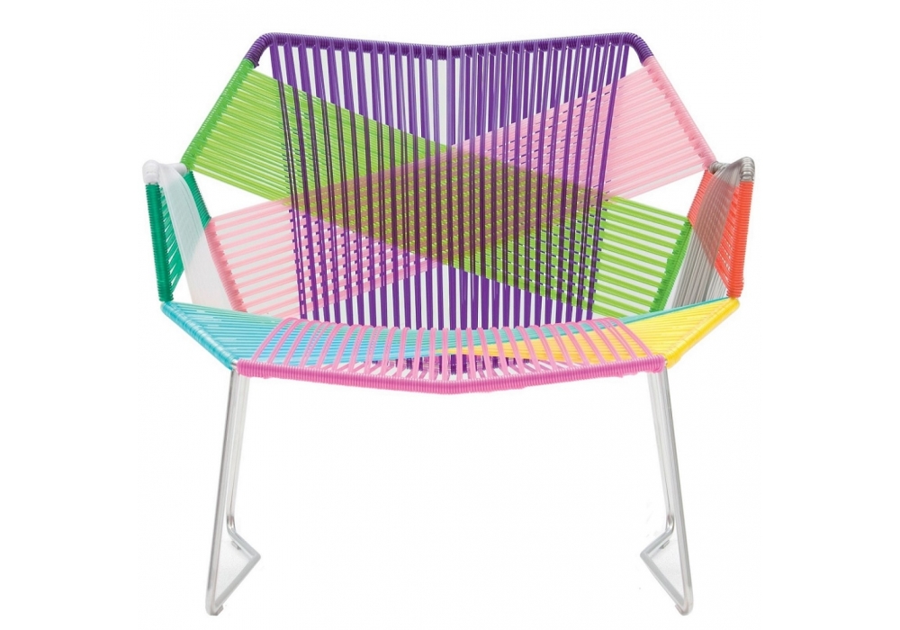 Tropicalia diseñada por Patricia Urquiola para Moroso es una butaca con brazos con estructura de acero inoxidable o acero pintado en diferentes acabados y plantilla de PVC. Asiento en alambre de tecnopolímero.
