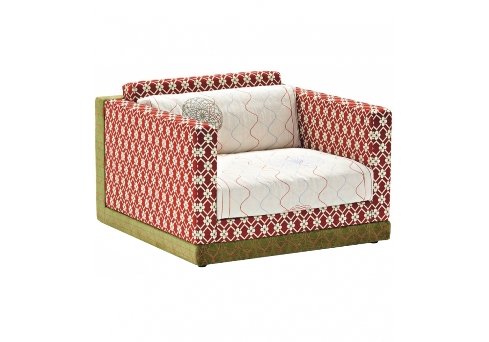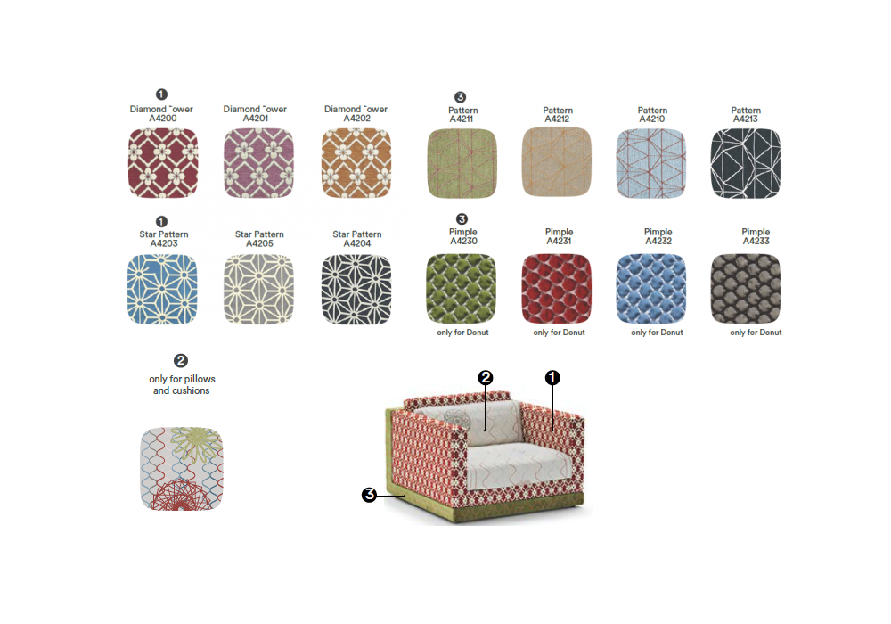 Karmakoma diseñado por Edward Van Vliet para Moroso es un sillón en espuma de poliuretano de densidad diferenciada y fibra de poliéster con estructura interna de madera. Revestimiento exterior de tela.