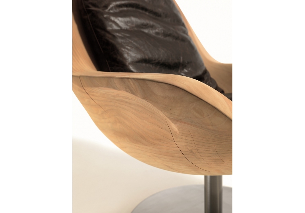 Creus diseñada por Pininfarina para Riva 1920 es una butaca en cedro macizo perfumado trabajado a partir de un solo bloque, caracterizada por la carcasa envolvente y ergonómica en línea continua entre asiento y respaldo. Cojín de apoyo en tejido o piel con costuras vistas. Base con pata tubular y placa de hierro.