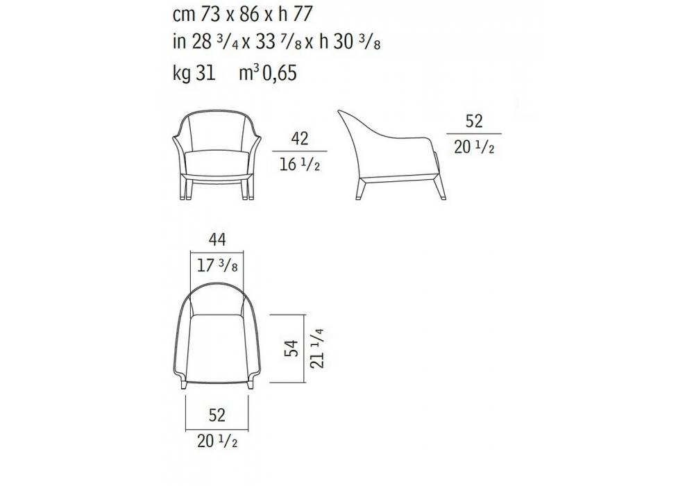 Normal is an armchair designed by Massimo Scolari for Giorgetti. with the base frame in polished solid beech wood and the back in compact rigid polyurethane and coldfoamed flexible polyurethane. The methacrylate seat has a non-deformable multi-density polyurethane cushion which is covered with fibre. The upholstery is available in fabric or leather.