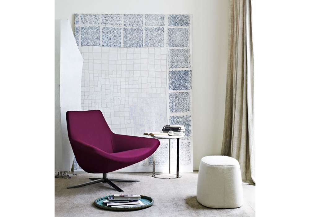 Metropolitan '14 diseñado por Jeffrey Bernett para B&B Italia es un sillòn con respaldo bajo con estructura de perfil tubular y acero y tapizada en diferentes tejidos o pieles. Base giratoria.