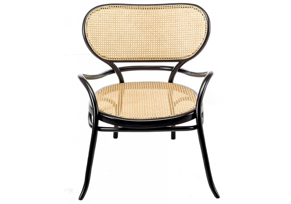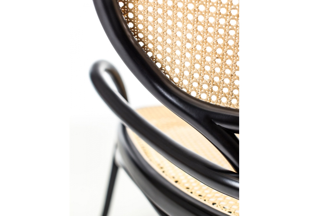 Lehnstuhl diseñado por Nigel Coates para Gebrüder Thonet Vienna es un sillón de haya curvada. Asiento y respaldo en paja de Viena con una gran malla.