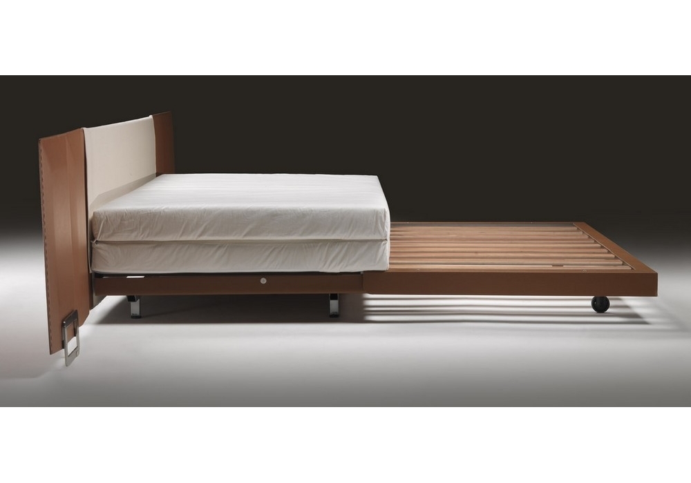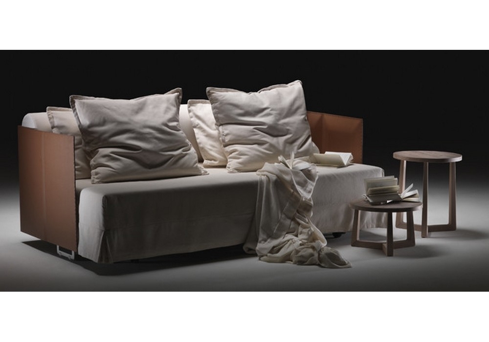 Eden is a sofa bed designed by Antonio Citterio for Flexform. Frame and backrest in metal and wood covered with hide leathers. Backrest cushions in polyurethane and Dacron. Seat cushion mattress in polyurethane covered with protective fabric lining. Platform with wooden slats. Upholstery removable fabric or leather covers. The price does not include the cost of the cushions.