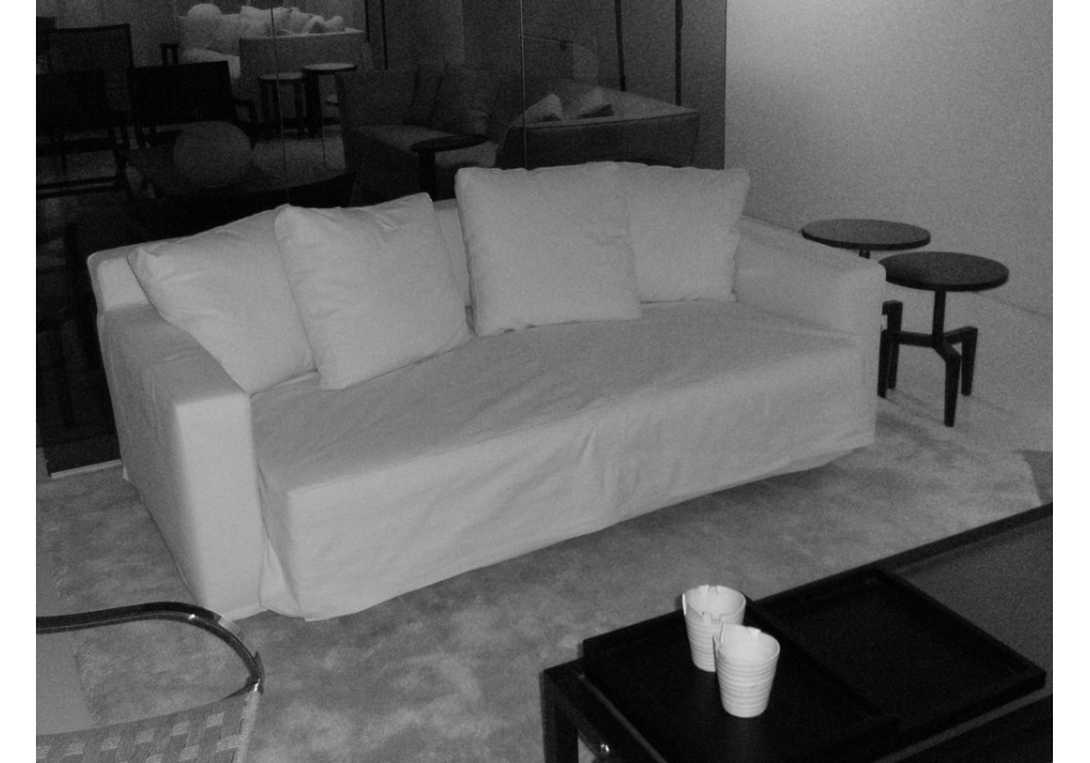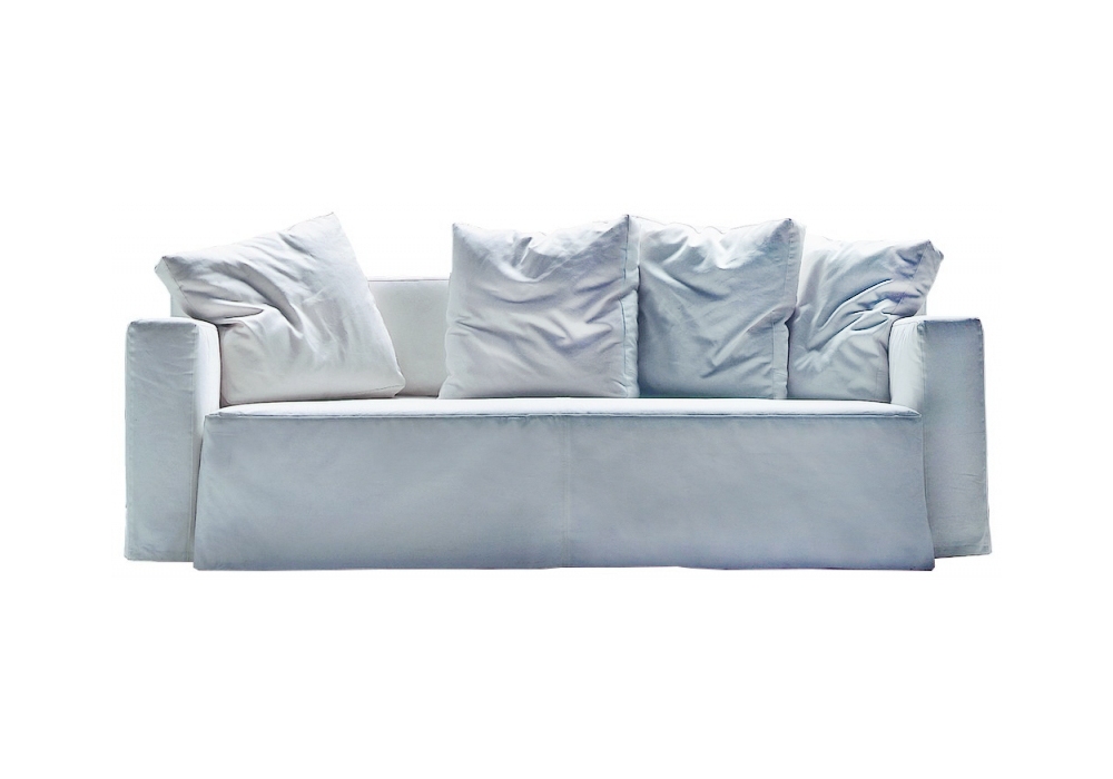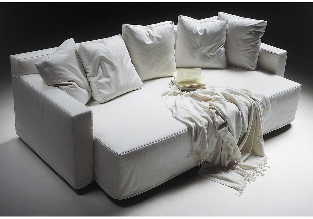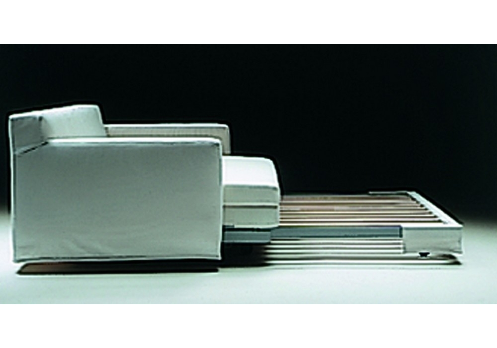 Winny is a sofabed designed by Guido Rosati for Flexform. Metal with polyurethane padding covered with a protective fabric lining foam. Back cushions polyurethane and Dacron with four pillows. Platform with wooden slats. Removable fabric covers.