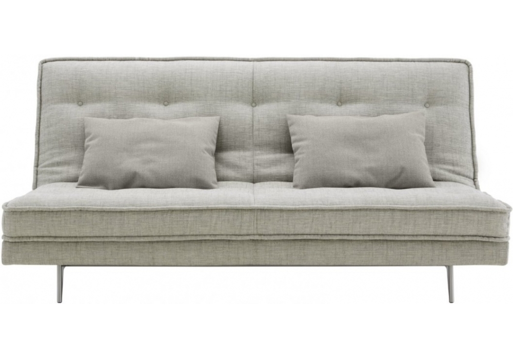 Nomade Express designed by Didier Gomez for Ligne Roset is a sofa-bed. A daily-use bed-settee of deliberately understated elegance. Well-proportioned with moulded aluminium feet and traditional, mattress-style buttoned cushions, it evokes the timeless style of the 1930's.