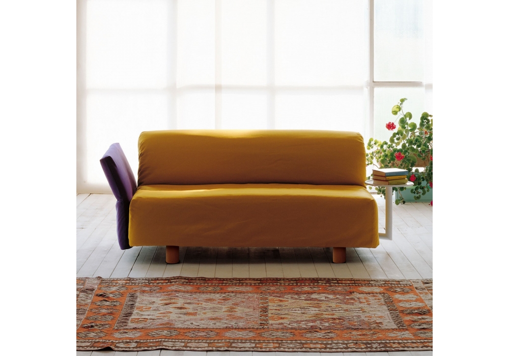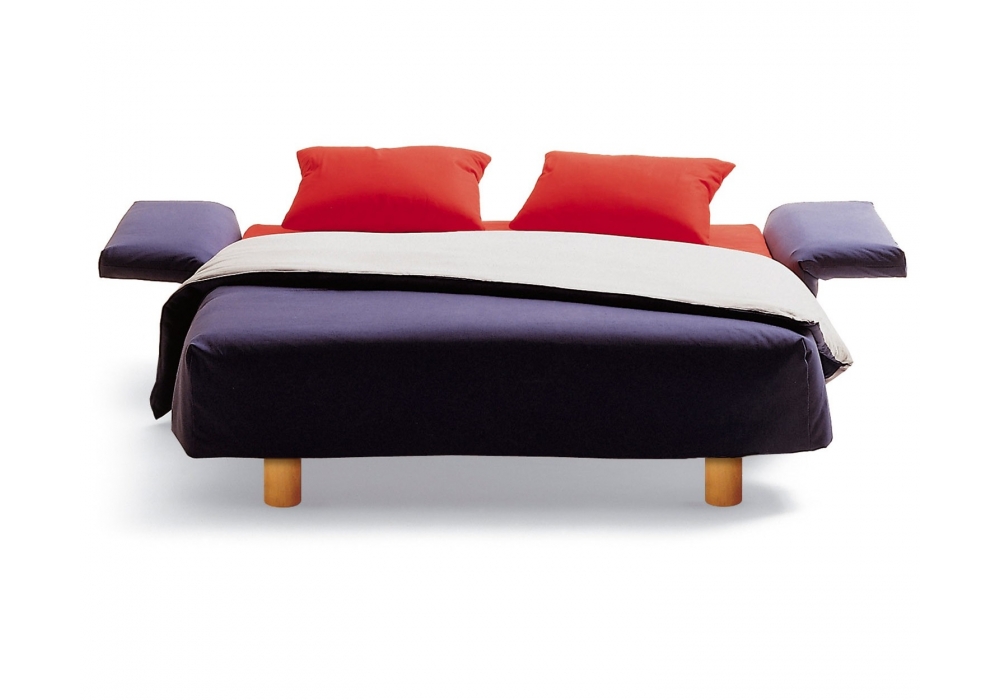 Istante diseñado por Campeggi es un sofà-cama con estructura de acero y somier en listones de madera. Colchón de poliuretano expandido de alta densidad. Apoyabrazos reclinables en tres posiciones. Mesas auxiliares giratorias en acero esmaltado blanco. También disponible en 2 medidas.
