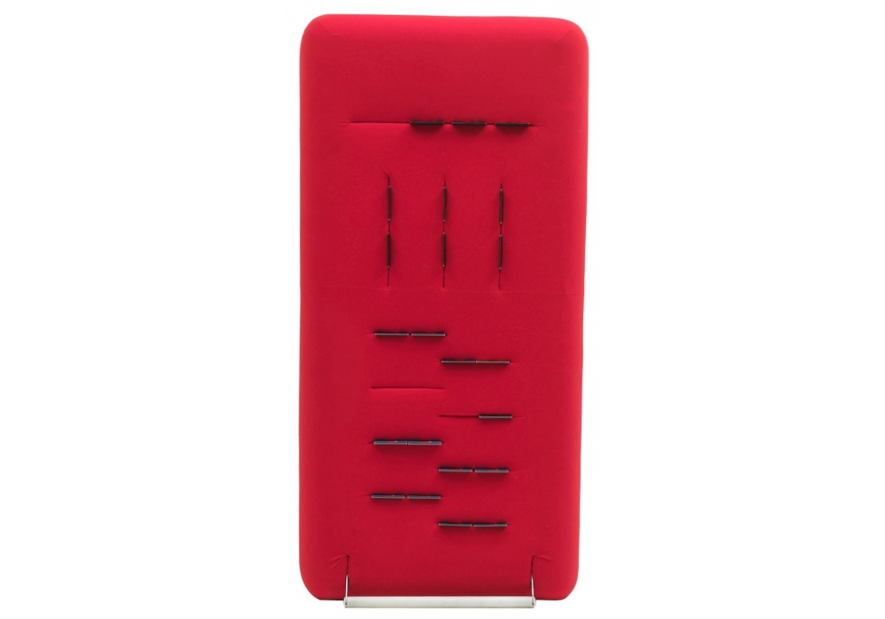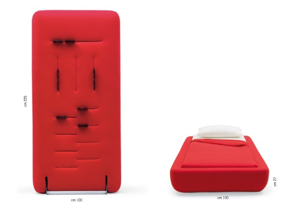 Ercolino diseñada por Giulio Manzoni para Campeggi es una cama abatible de pared que se puede fácilmente levantar y usar en posición vertical como una suave unidad de almacenamiento. La ergonómica cama plegable tiene una sólida estructura en madera estratificada acolchada en espuma de poliuretano y colchón en poliuretano. El revestimiento completamente desmontable es disponible en Lycra de diferentes colores.