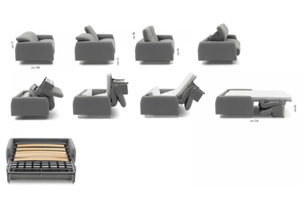 Plan diseñado por Campeggi es un sofà-cama con un respaldo abatible. Somier con listones de haya laminada antideslizante y colchón en espuma de poliuretano sin CFC o colchón de muelles. También disponible en 3 medidas.