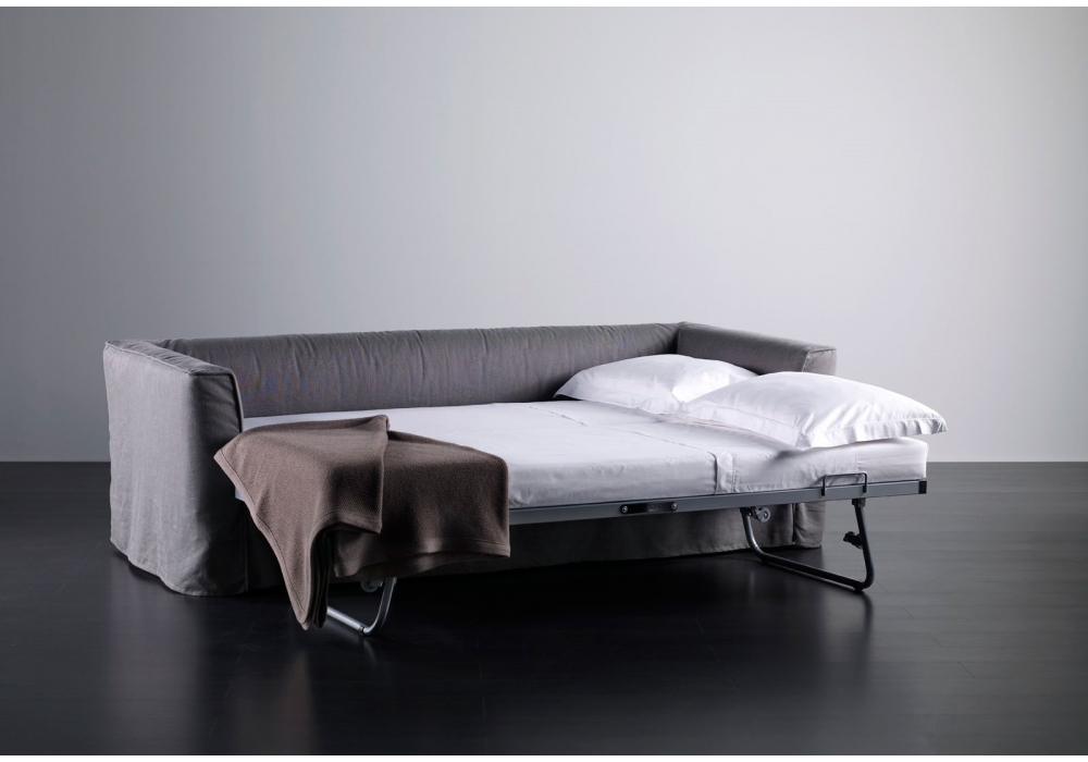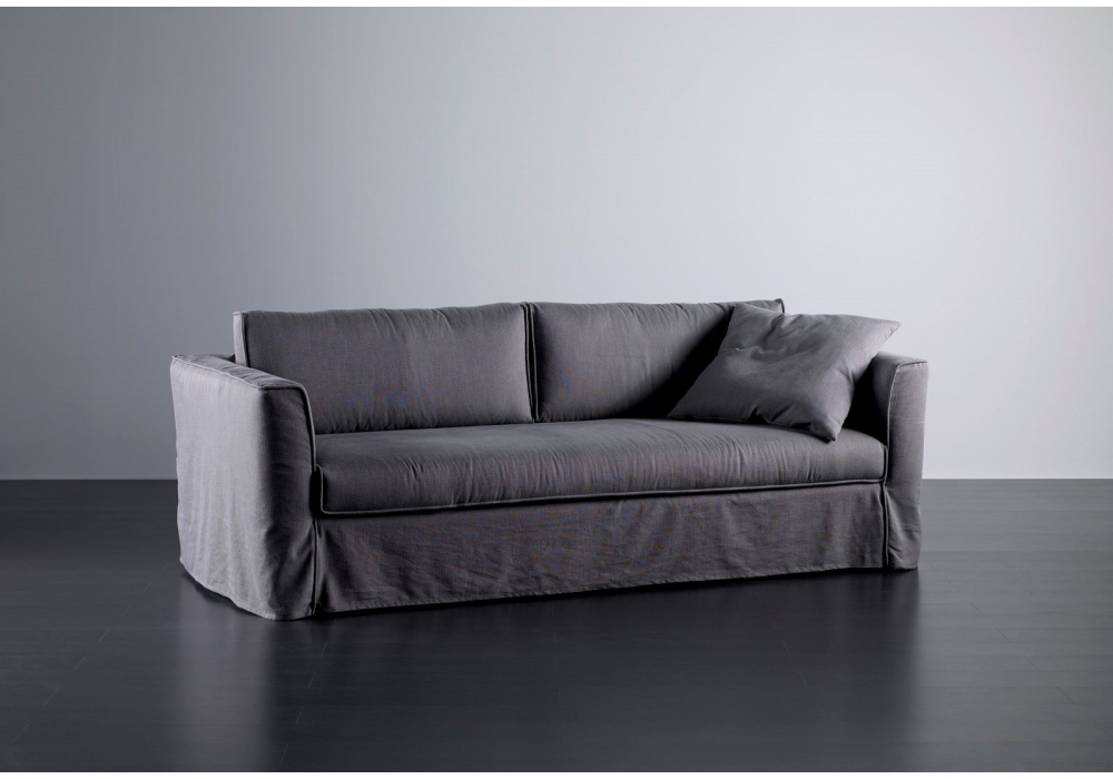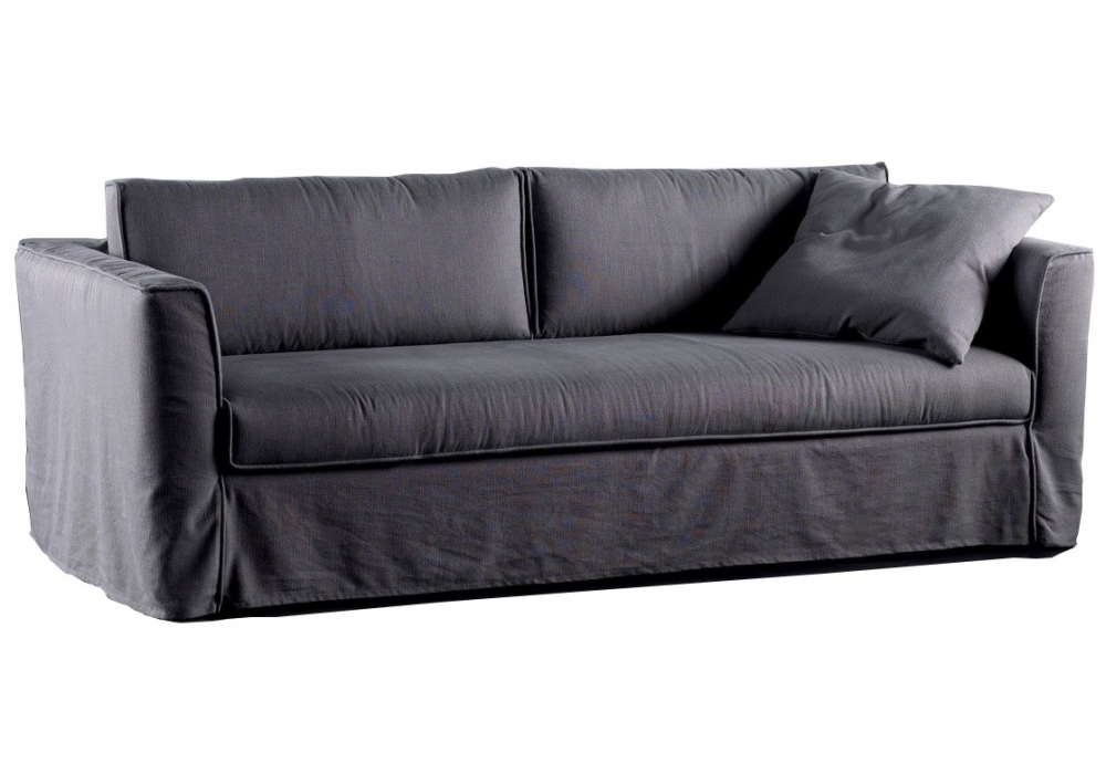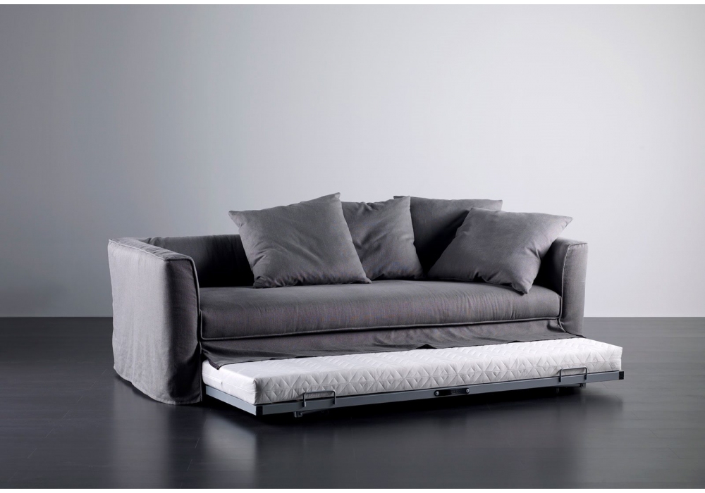 Law diseñado por Andrea Parisio para Meridiani es un twin bed acolchado con perfil en tela. Estructura de metal con somier portante a láminas y paneles de madera acolchados en poliuretano. Revestimiento disponible en tejido.
