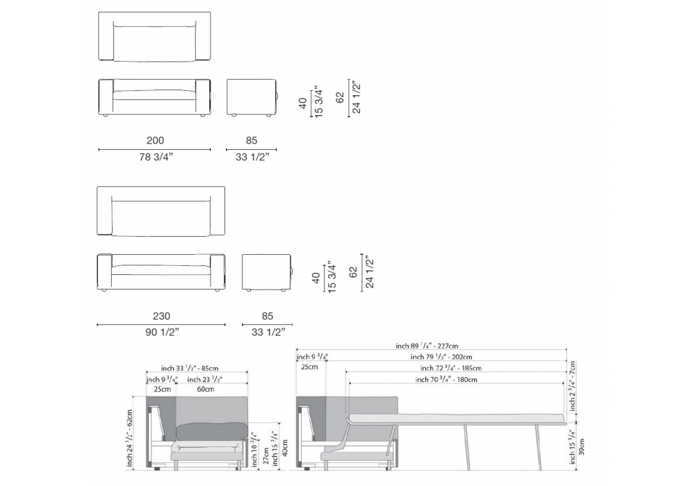 Cuba 25 Sofa-Bed diseñado por Rodolfo Dordoni para Cappellini es un sofá cama realizado con revestimiento de tela o cuero, espuma de poliuretano de densidad diferenciada y relleno de fibra, estructura de madera y pies de plástico negro. Disponible en diferentes dimensiones.