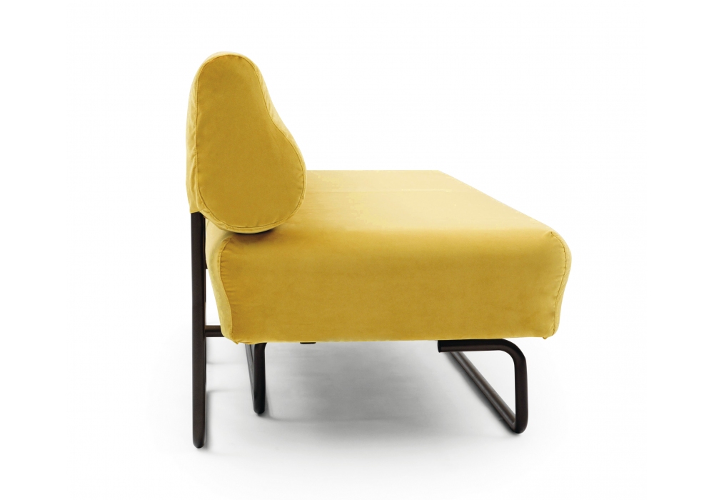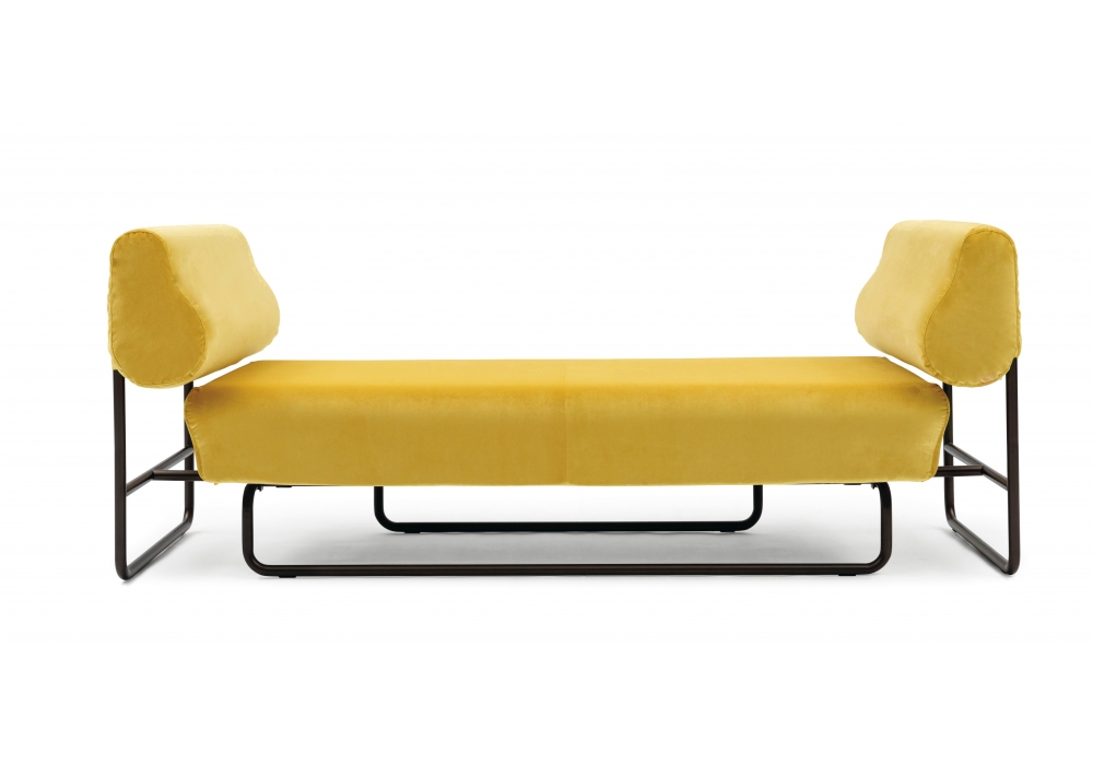Taipi diseñado por Paolo Imperatori para Campeggi es un sofá cama con estructura en metal bruñido, acolchado en espuma de poliuretano multidensidad mientras que el revestimiento es desenfundable y está disponible en varios colores.