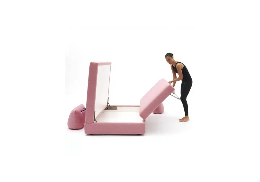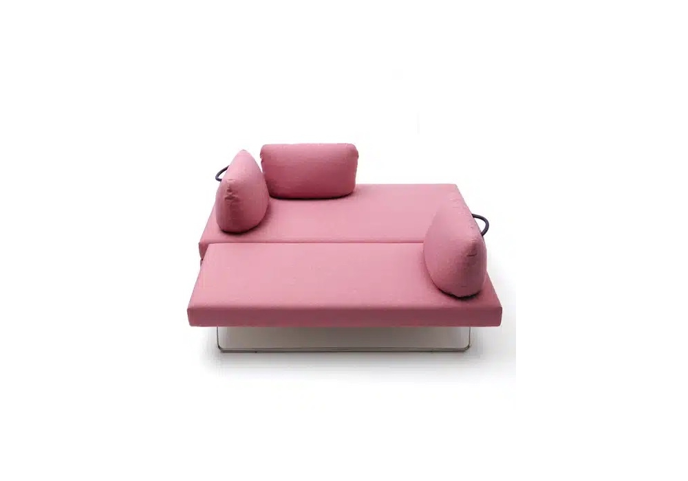 Big-Bag diseñado por Giulio Manzoni para Campeggi es un sofá cama que se puede reconfigurar y reinventar a voluntad gracias al respaldo formado por cojines autoportantes, con un práctico asa de cuero natural, simplemente colocado sobre la superficie del asiento y convenientemente equilibrado para ofrecer el apoyo adecuado.
