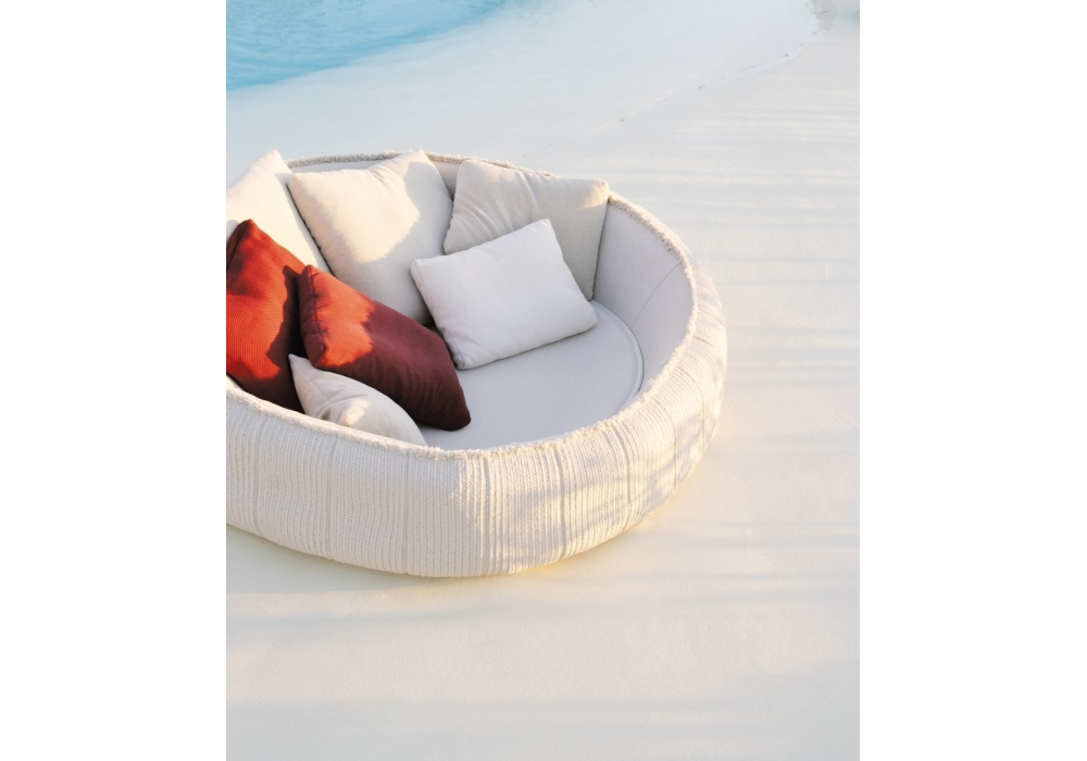 Ease diseñado por Francesco Rota para Paola Lenti es un sofá de exterior con colchón y revestimiento lateral disponible en diferentes acabados. El color del colchón siempre se combina con el lateral.