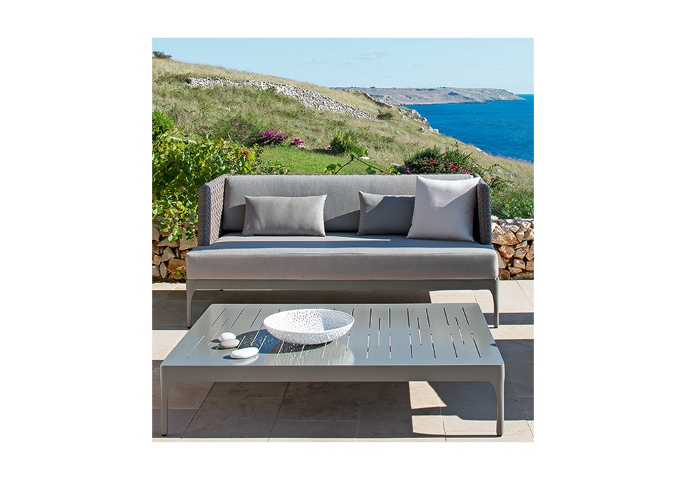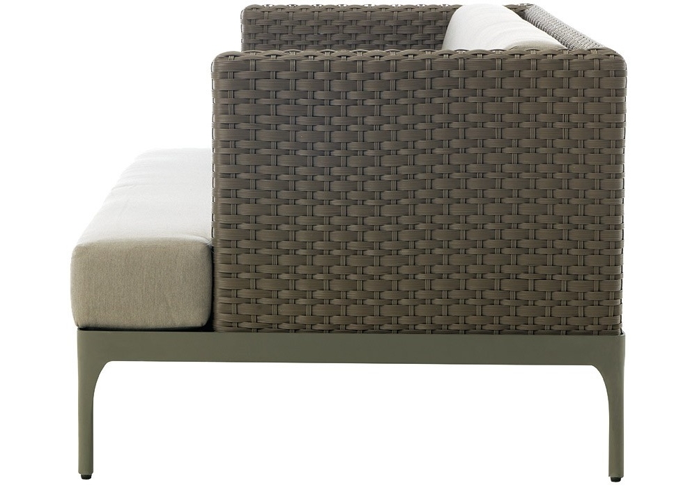 Infinity producido y diseñado por Ethimo es un sofá de 3 plazas para exterior con estructura en aluminio y fibra Lightwick. La cubierta y el tejido son repelentes al agua. Infinity está disponible en diferentes acabados.