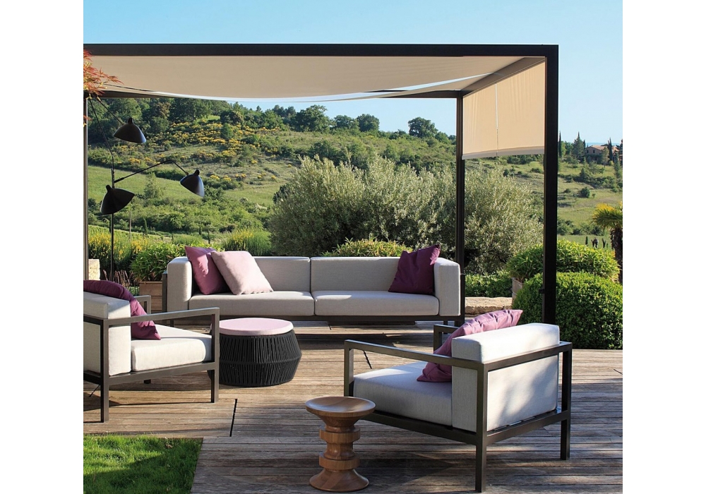 Landscape, producido y firmado por Kettal Studio, es un sofá modular con estructura de aluminio pintado y acolchado revestido de tela. Landscape está disponible en diferentes acabados y tamaños.