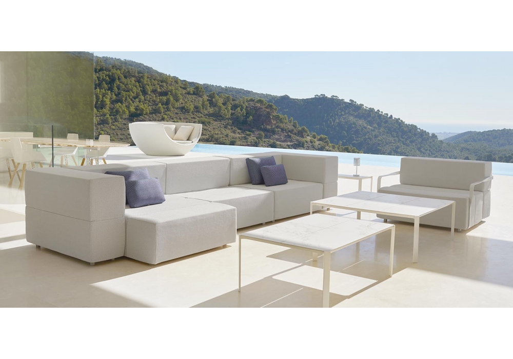Tablet diseñado por Ramón Esteve para Vondom es un sofá modular con estructura metálica y patas de aluminio recubiertas con polvo. Tapicería en tejido exterior (100% polipropileno) disponible en diferentes acabados. Tratamiento repelente al agua.