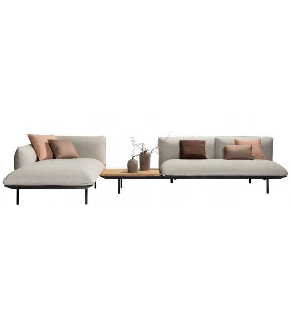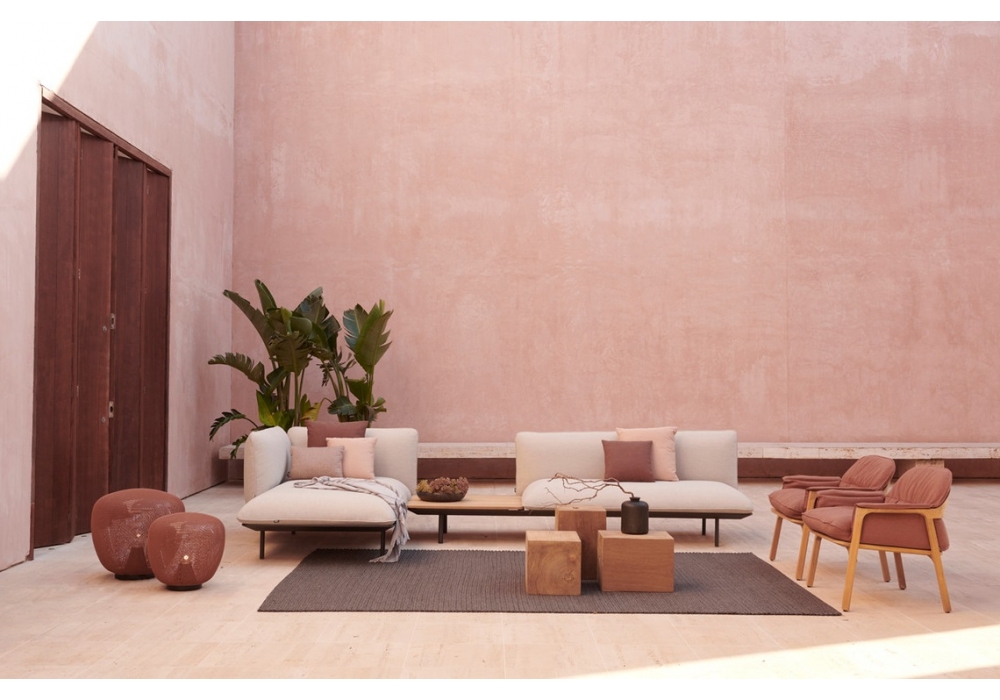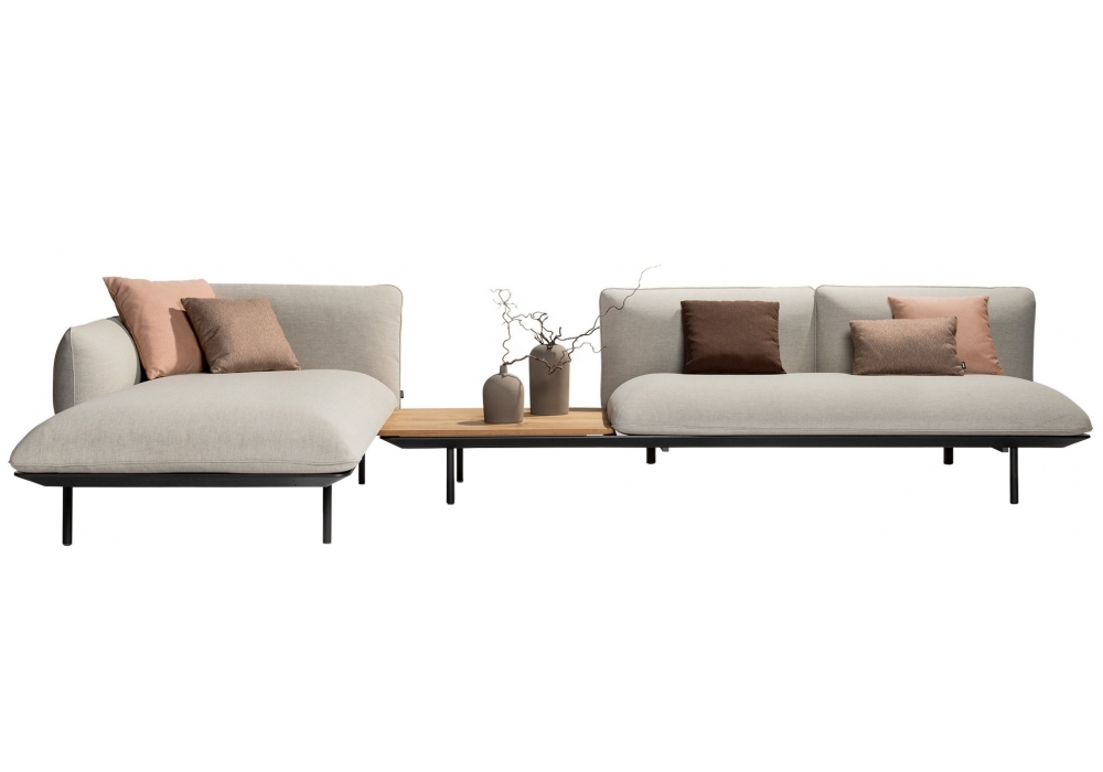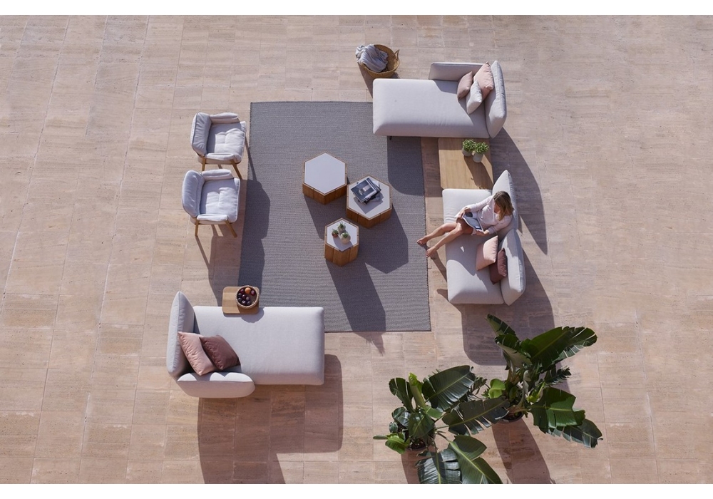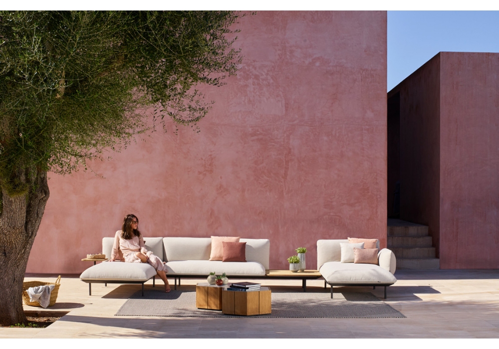 Senja diseñado por Studio Segers para Tribù es un sofá modular con estructura en aluminio lacado en polvo. Acolchado de polipropileno repelente al agua y tapiceria en tejido resistente al agua. Senja puede configurarse para adaptarse a cualquier espacio, mezclando módulos individuales y múltiples para crear asientos de esquina o lineales, personalizando tu sofá en su máxima expresión.