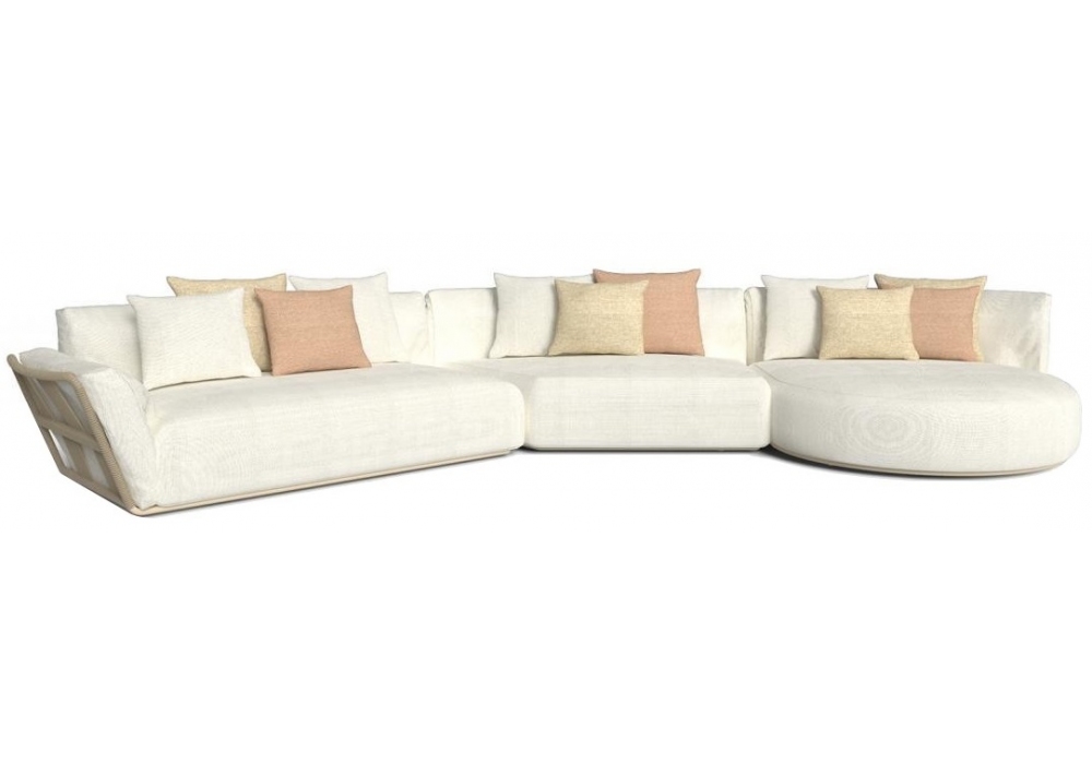 Scacco diseñado por Ludovica y Roberto Palomba para Talenti es un sofá modular para exteriores, fabricado en aluminio y cuerda disponible en diferentes acabados.