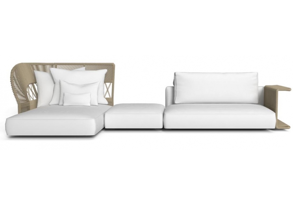 Cliff Dèco diseñado por Ludovica y Roberto Palomba para Talenti es un sofá modular de cuerda y tela. Los detalles están hechos de aluminio cubierto con cuerda náutica tejida en diferentes acabados. Para la variedad de módulos tanto en la versión con respaldos altos como bajos, se pueden hacer diferentes composiciones.