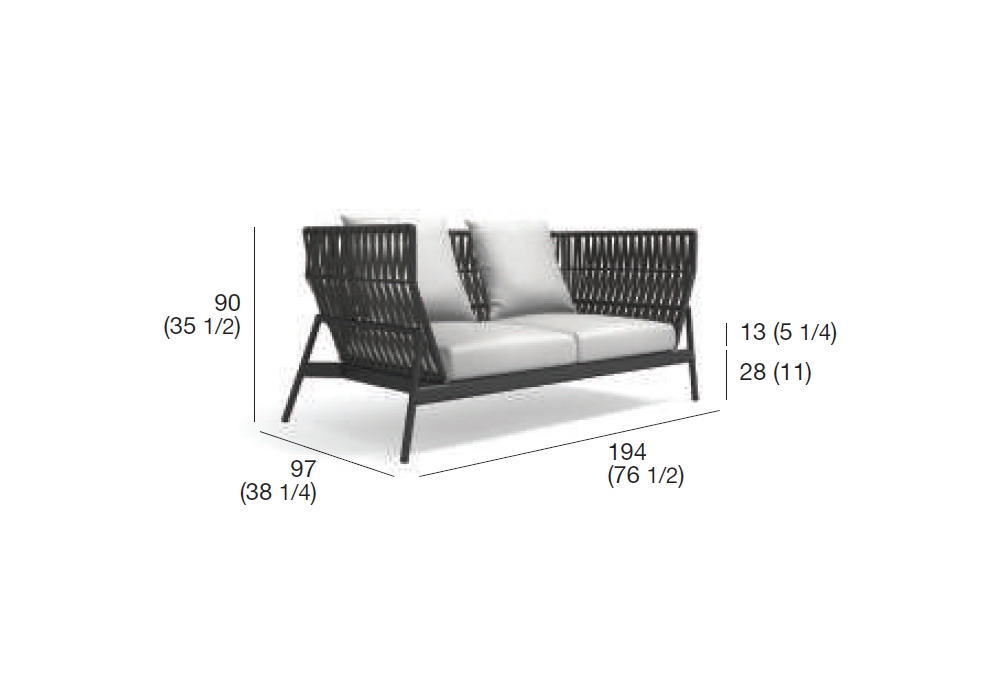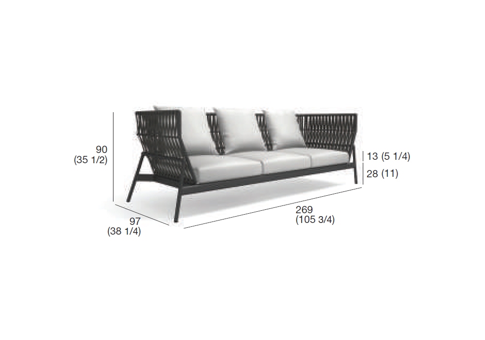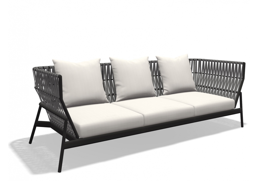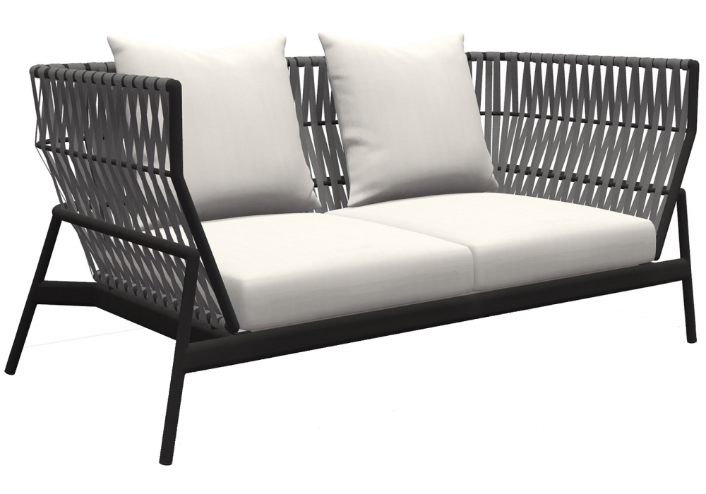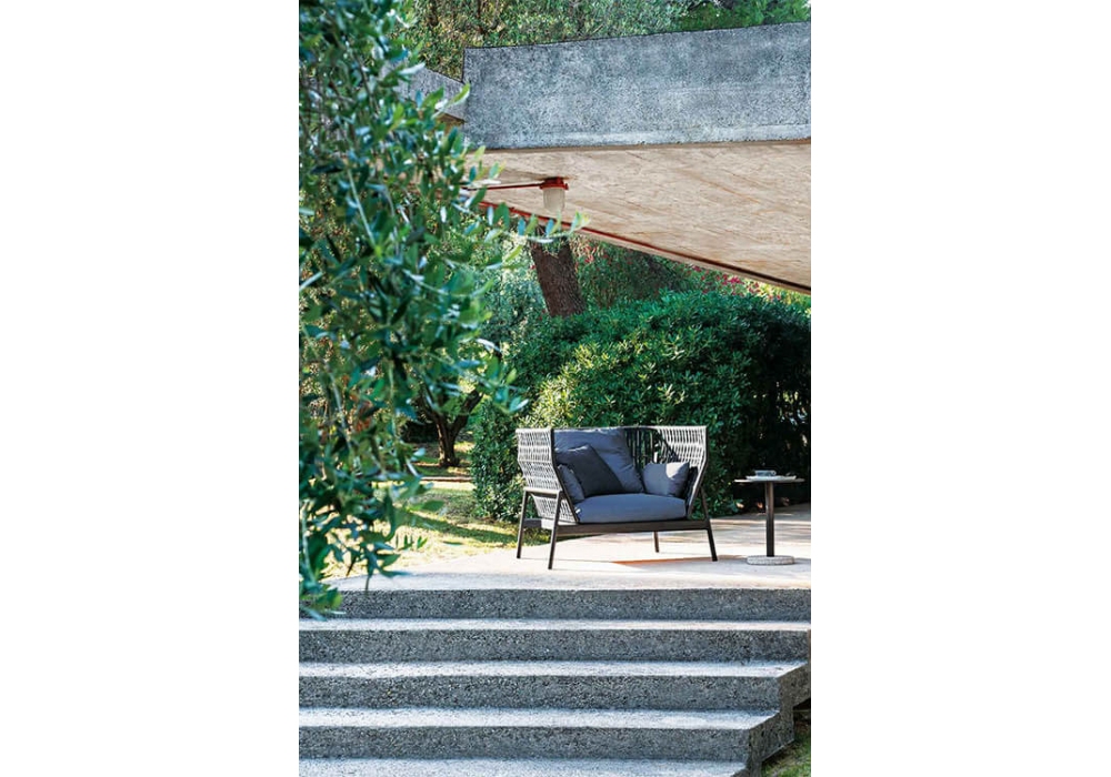 Piper diseñado por Rodolfo Dordoni para Roda es un sofá de aluminio pintado en polvo con respaldo de cinturón tejido. Está disponible en diferentes acabados y tamaños.