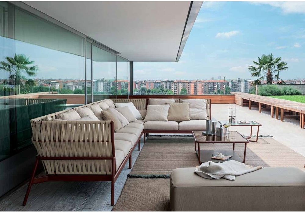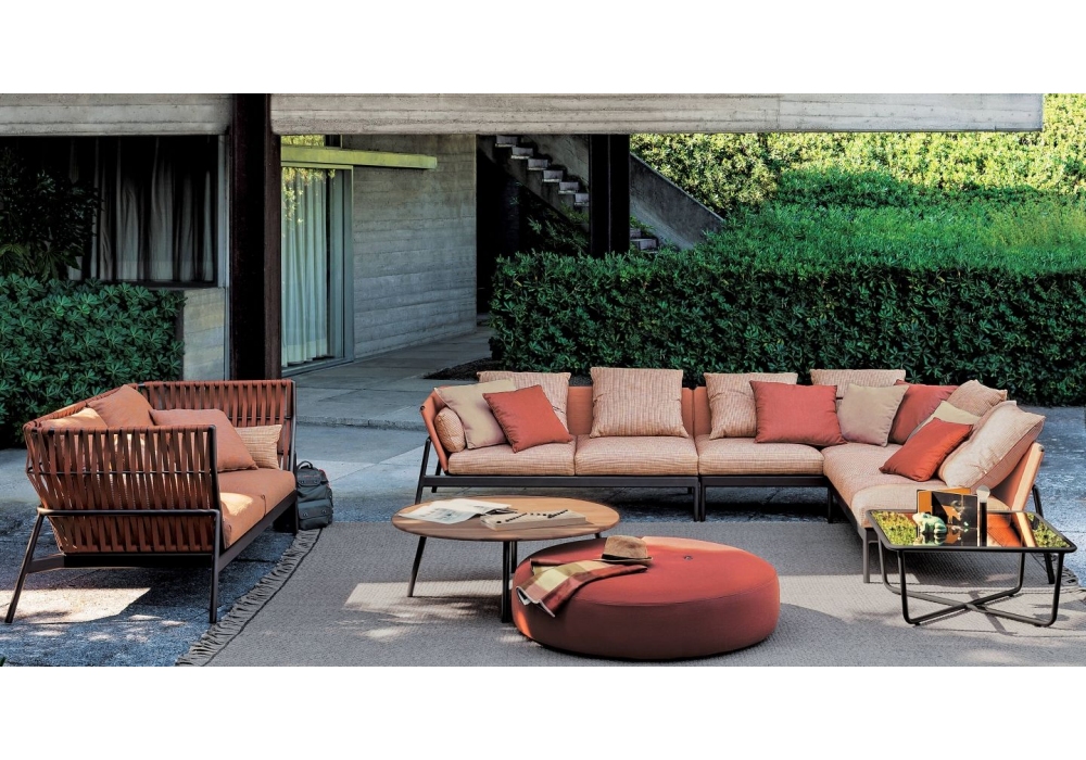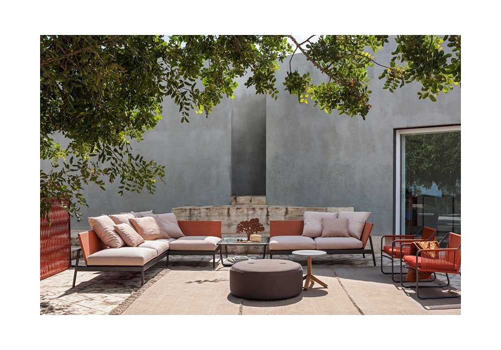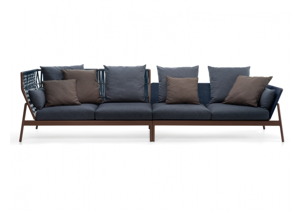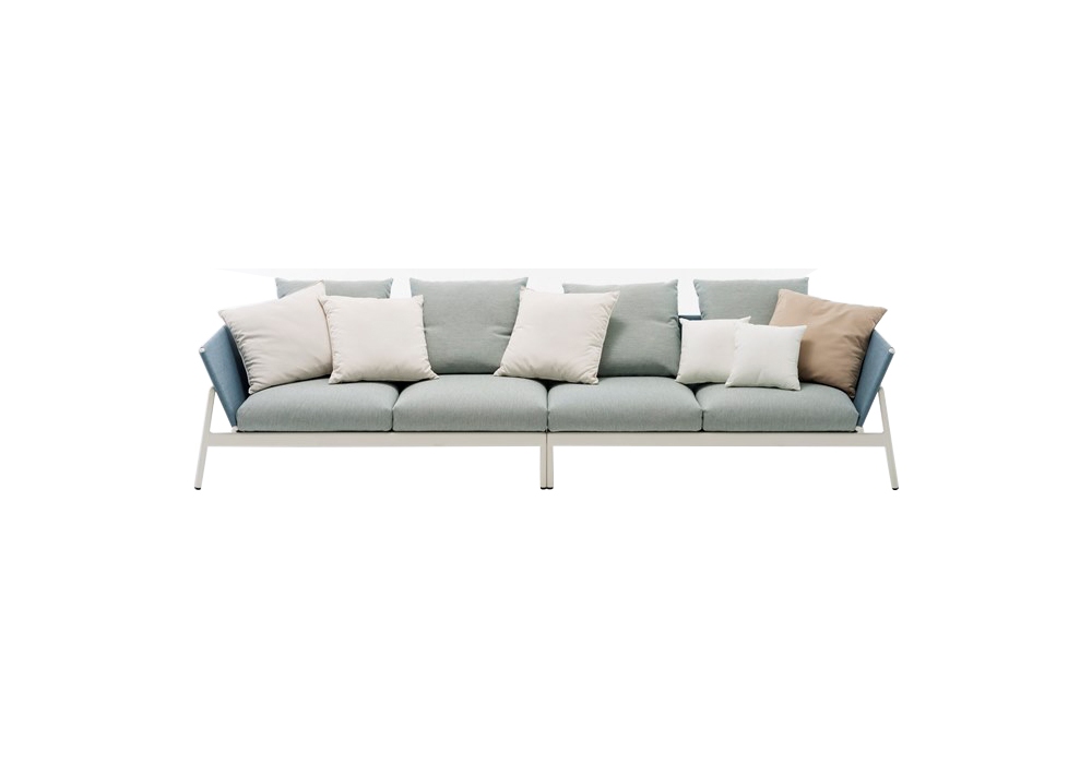 Piper diseñado por Rodolfo Dordoni para Roda es un sofá modular de aluminio pintado en polvo disponible con respaldo en batyline o tejido. Cojines tapizados en tela de respaldo y asiento. Está disponible en diferentes composiciones y acabados.