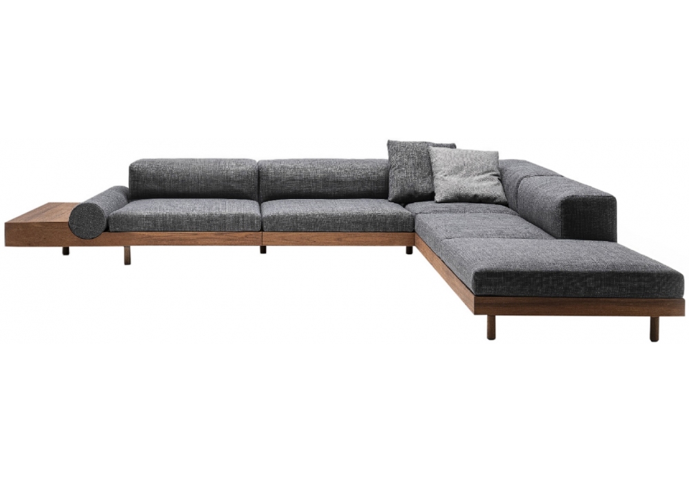 Kasbah diseñado por David Lopez Quincoces para Living Divani es un sofá modular con estructura en madera de teca maciza con acabado de aceite protector repelente al agua y a los rayos UV, y revestimiento en tejido para exteriores.