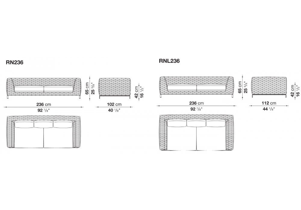 | Dimensiones | 236 x 102 x H 65 cm; 236 x 112 x H 65 cm. |