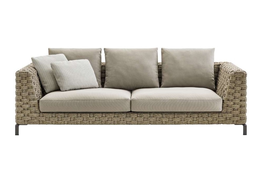 Ray Outdoor Natural diseñado por Antonio Citterio para B&B Italia Outdoor es un sofá fijo disponible en 2 tamaños. Realizado con carcasa trenzada de textilene color natural y patas de aluminio pintado antracita. Revestimiento de tela.
