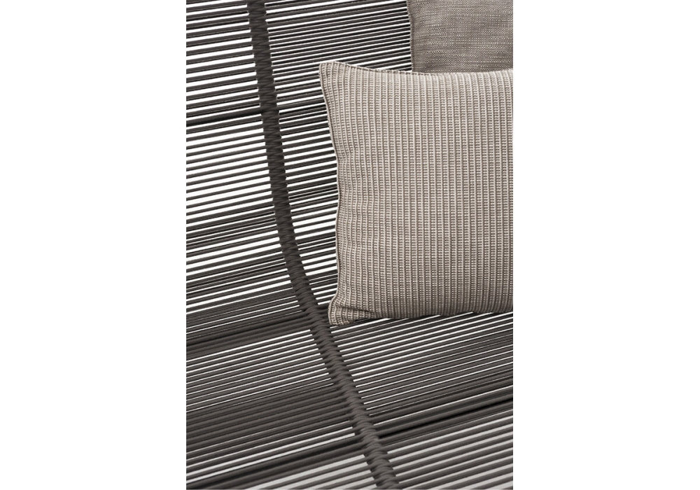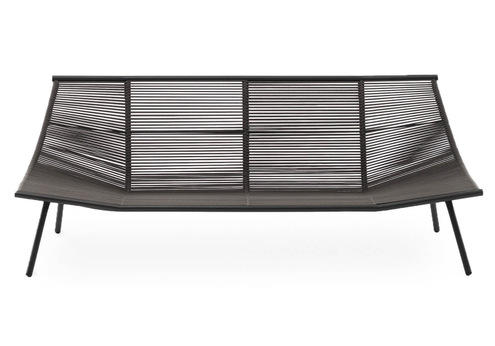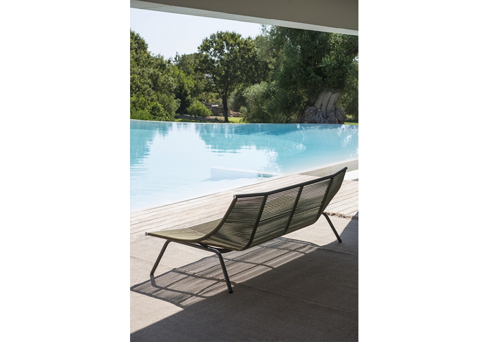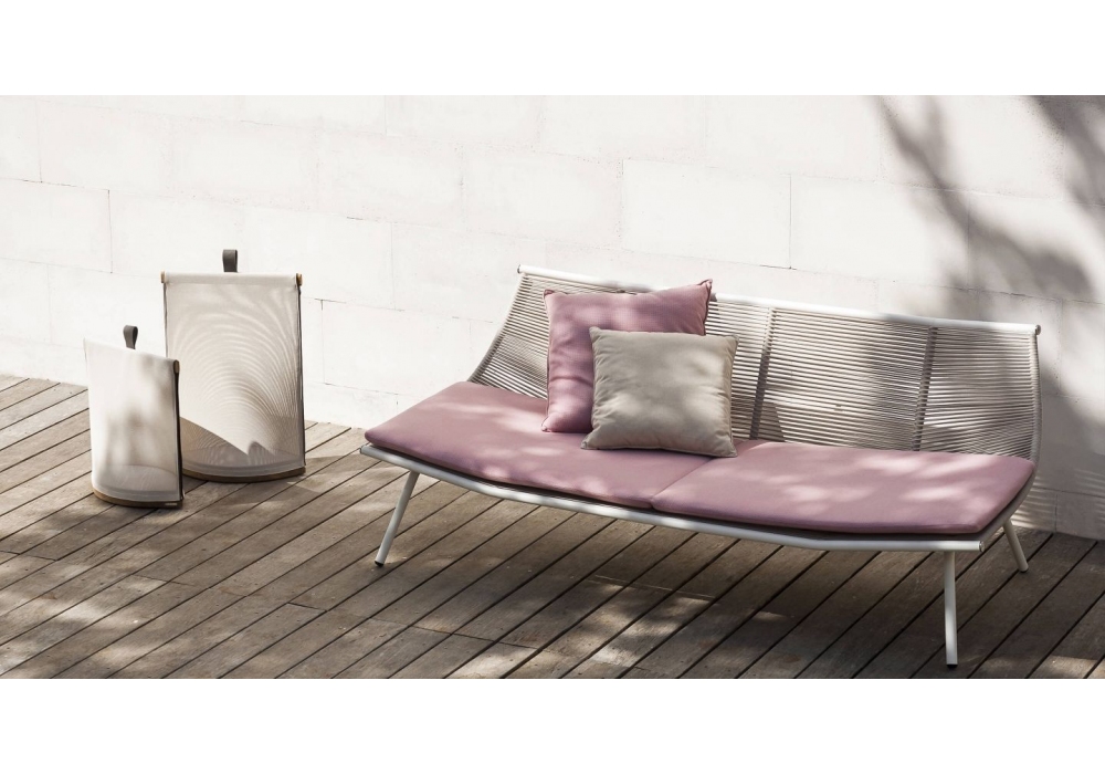 Laze diseñado por Gordon Guillaumier para Roda es un sofá de exterior con estructura de acero inoxidable con recubrimiento de polvo y cuerpo compuesto por cordones de poliéster o acrílico.