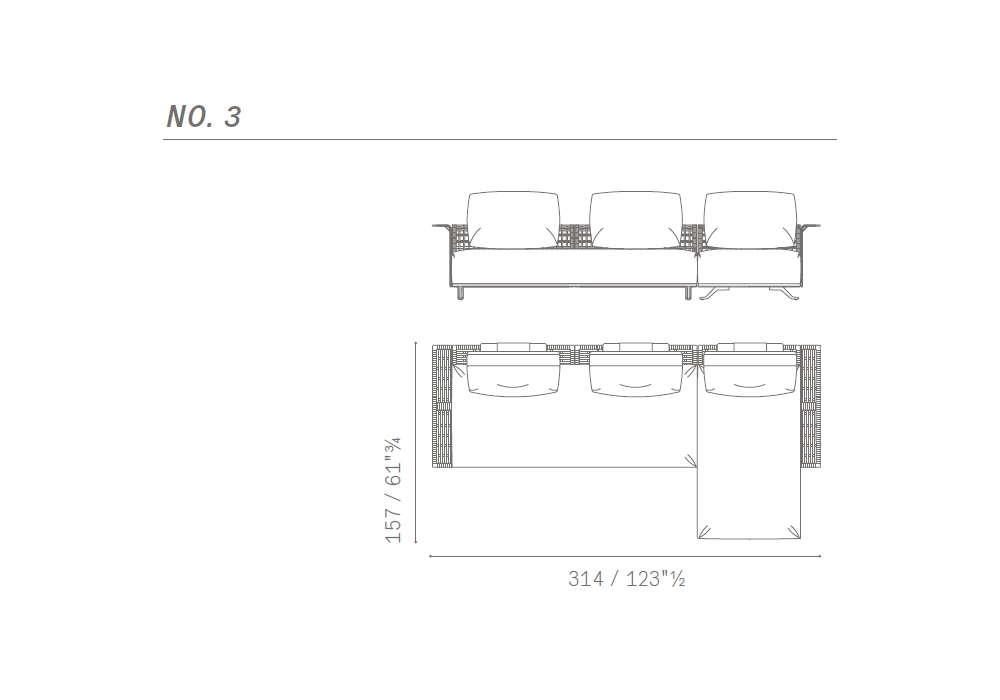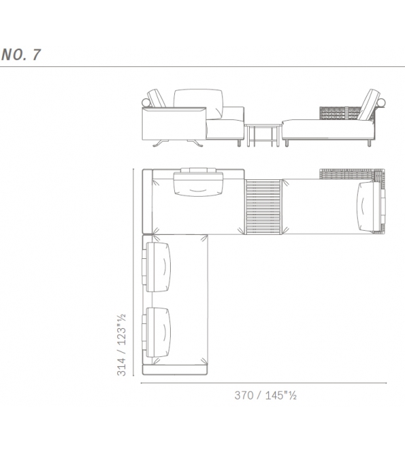 Solaria diseñado por Ludovica y Roberto Palombo para Poltrona Frau es un sofá modular de exterior con estructura en acero inoxidable pintado en polvo, sostenido por pies delgados. Los apoyabrazos y el respaldo, también en acero inoxidable, están cubiertos con un tejido de cuerda tejida a mano. Los elementos acolchados son extraíbles y están cubiertos con tejido exterior suave al tacto. Los cojines para exteriores están diseñados para drenar el agua permitiendo que los sofás se sequen rápidamente y se pueden enriquecer con otros cojines opcionales para dar más apoyo al respaldo.