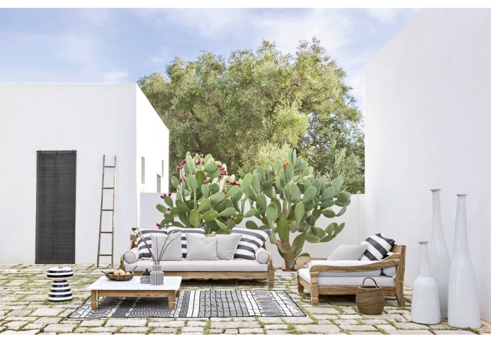 Jeko 04 diseñado por Paola Navone para Gervasoni es un sofá en ECOTeak y cojines con fundas desenfundables.