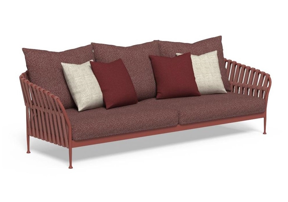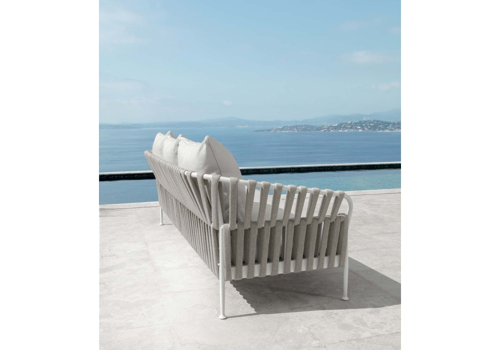 Frame diseñado por Ludovica + Roberto Palomba para Talenti es un sofá de exterior con estructura en aluminio pintado en polvo. Estructura del respaldo rivestida con cuerda acolchada. Disponible en dos dimensiones. Los cojines tienen fundas removibles y están tapizados en telas para exteriores resistentes a la intemperie.