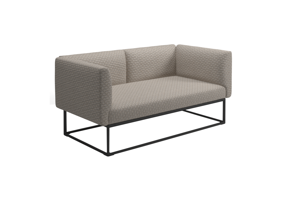 Maya diseñado por Mark Gabbertas para Gloster es un sofá de exterior compuesto por una estructura de aluminio pintado en polvo y cojines de asiento, respaldo y reposabrazos revestidos de tejido de exterior.