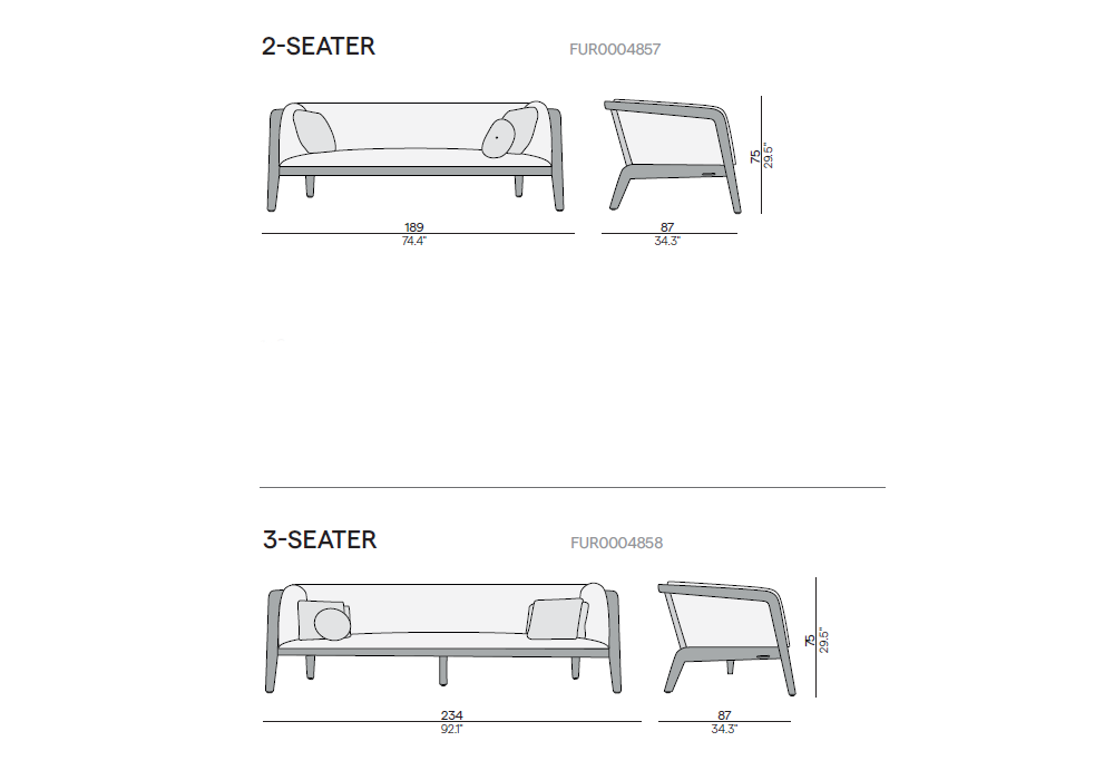 | Dimensiones | 2-Seat: 189 x 87 x H 75 cm; 3-Seat: 234 x 87 x H 75 cm. |