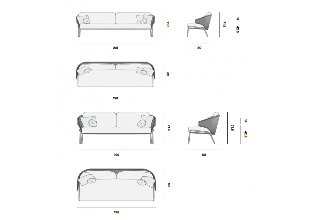 | Dimensiones | - 195 x 80 x H 71.5 cm; - 241 x 80 x 71.5 cm. |