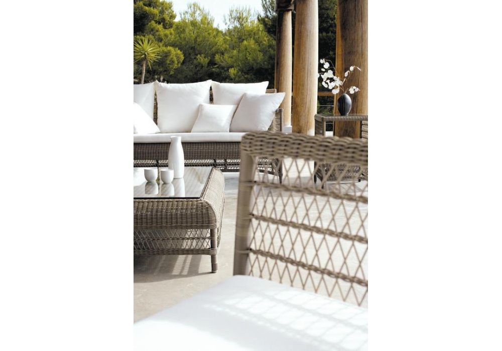 Malibu diseñado por Stephane De Winter para Manutti es un sofá de exterior con estructura de mimbre trenzado. Tapicería disponible en diferentes acabados.