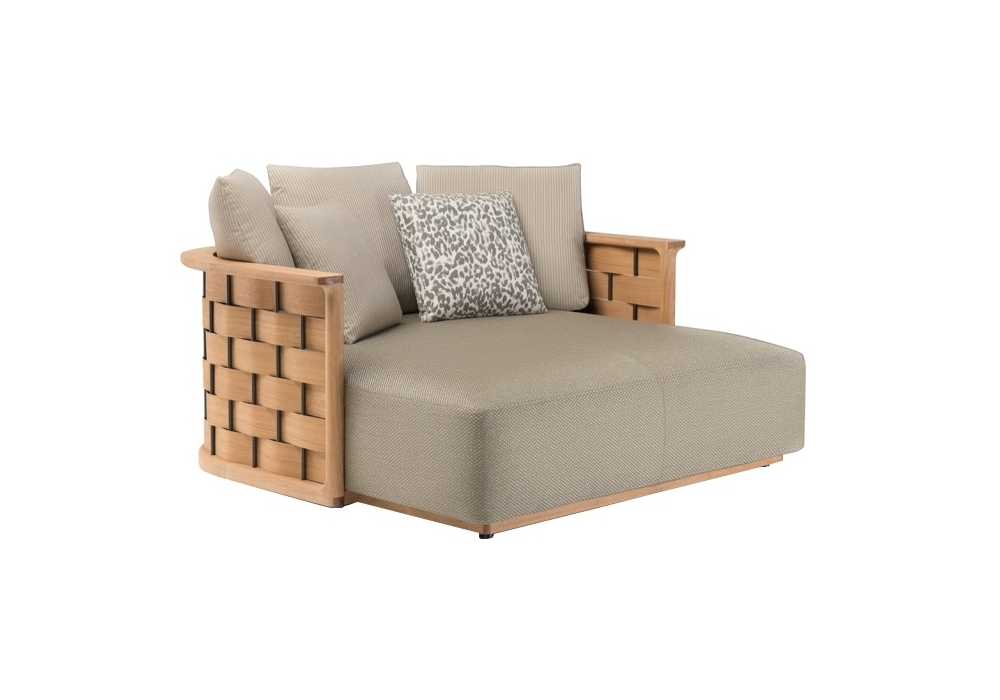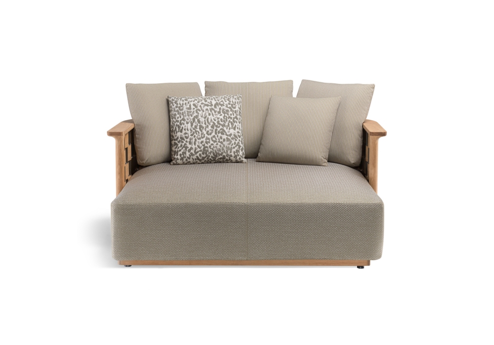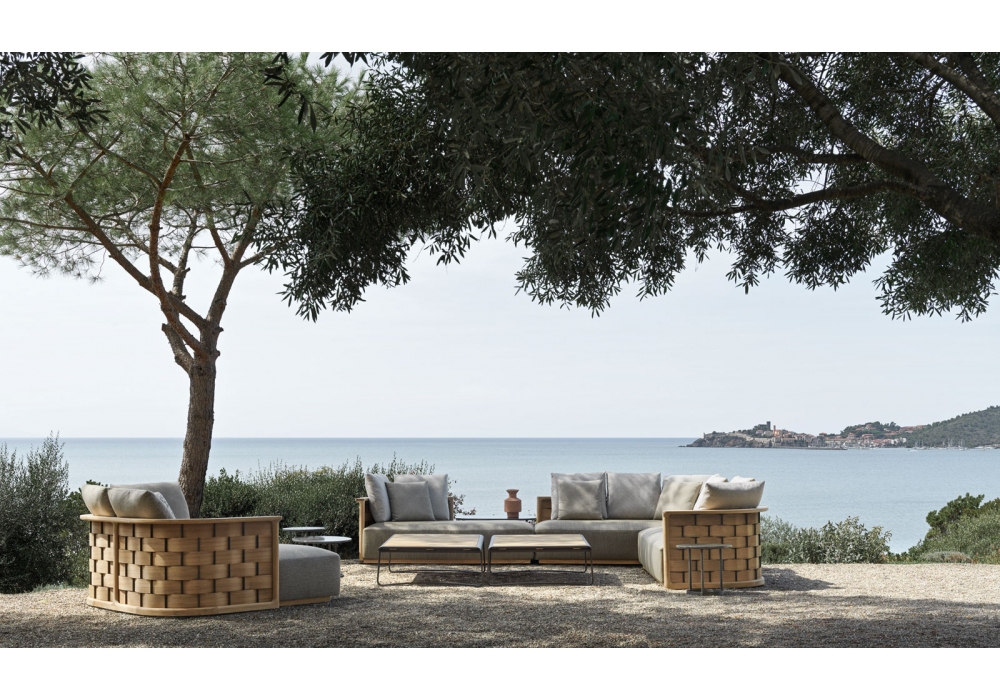 Palinfrasca diseñado por Vincent Van Duysen para Molteni&C es un sofá realizado con estructura en teca maciza, carcasa con bandas tejidas en teca o en poliuretano EVA verde oliva. Acolchado de poliuretano y funda de tela. Disponible en diferentes modelos.