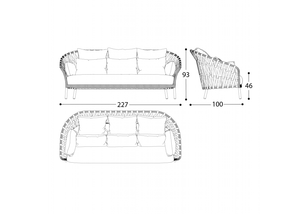 | Dimensiones | - 227 x 100 x H 93 cm; |