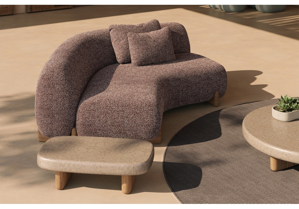 Milos diseñado por Jean Marie Massaud para Vondom es un sofá modular realizado con acolchado de espuma de poliuretano, pies de madera de iroko y tapizado en tela.