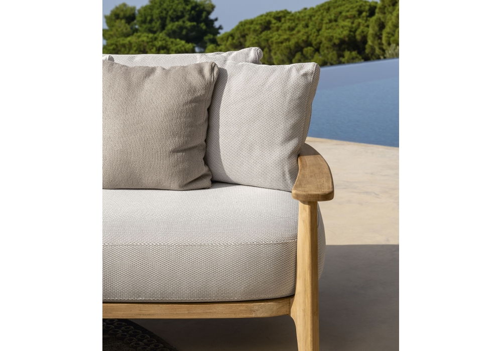 Ever diseñado por Christophe Pillet para Talenti es un sofá realizado en madera, asiento acolchado y respaldo tapizado en tela. Disponible en diferentes acabados.