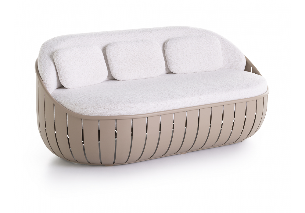 Arena diseñado por Søren Rose para Gandia Blasco es un sofá 2 plazas de diseño con lamas de aluminio termolacado tratadas individualmente para lograr una curva perfecta. Asiento, respaldo y cojín de caucho de poliuretano y fibra de poliéster con tejido hidrófugo. Cojínes de 45 x 27 cm y colchón incluidos. Disponible en diferentes acabados.
