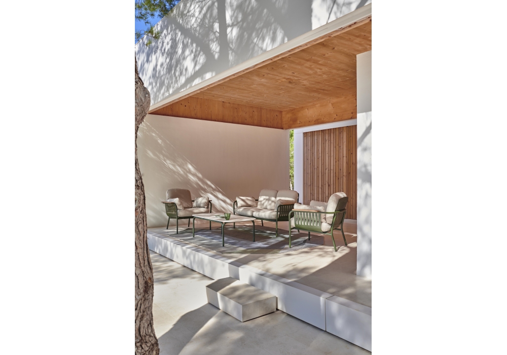 Capa diseñado por Søren Rose para Gandia Blasco es un sofá de 2 plazas de diseño realizado en aluminio pintado en polvo. Reposabrazos de porcelana (opcional) o madera de iroko. Asiento y respaldo de gomaespuma de poliuretano y fibra de poliéster con tejido hidrófugo. Cojín de fibra de poliéster con tejido hidrófugo. Disponible en diferentes acabados.