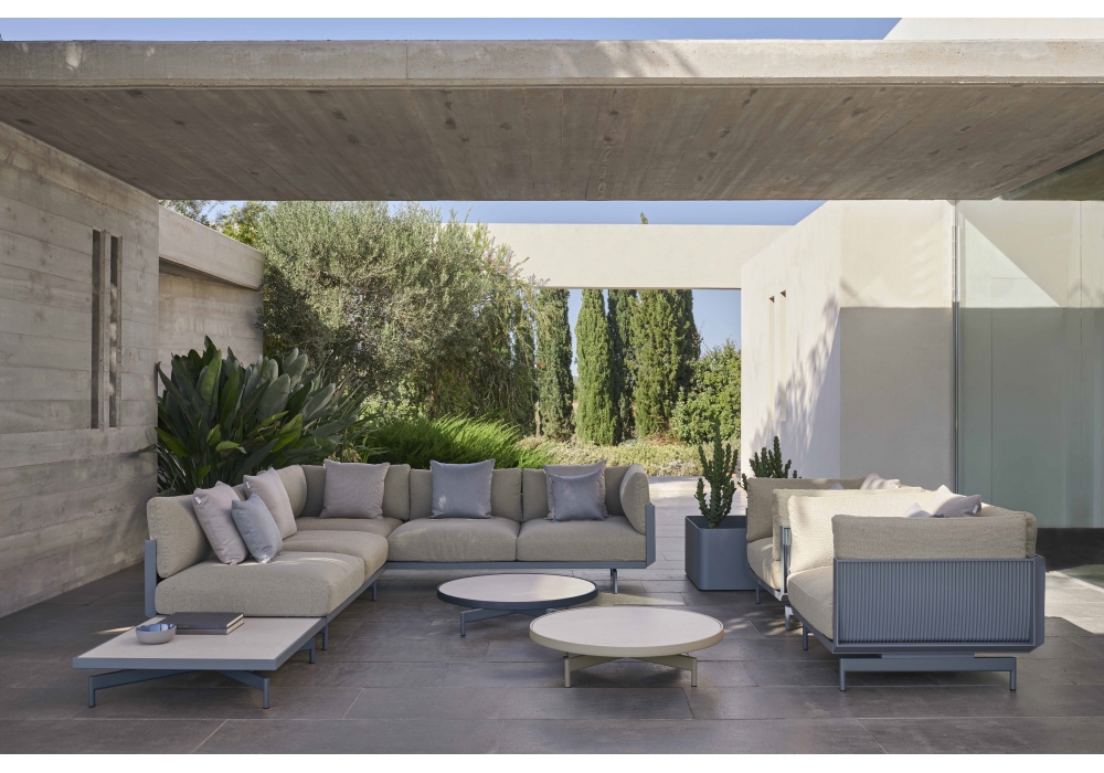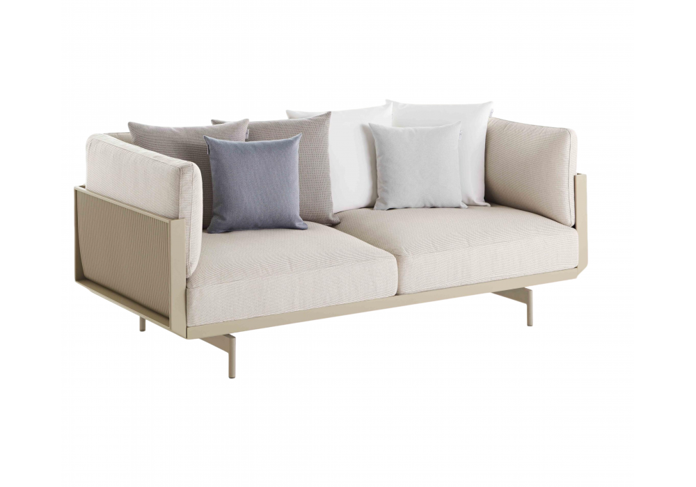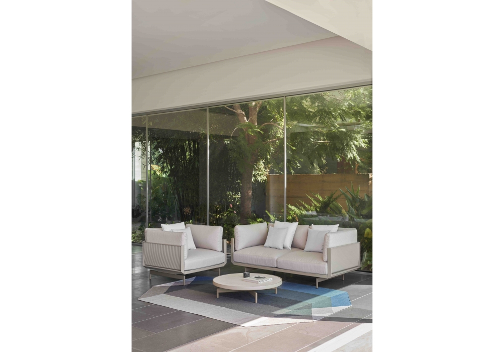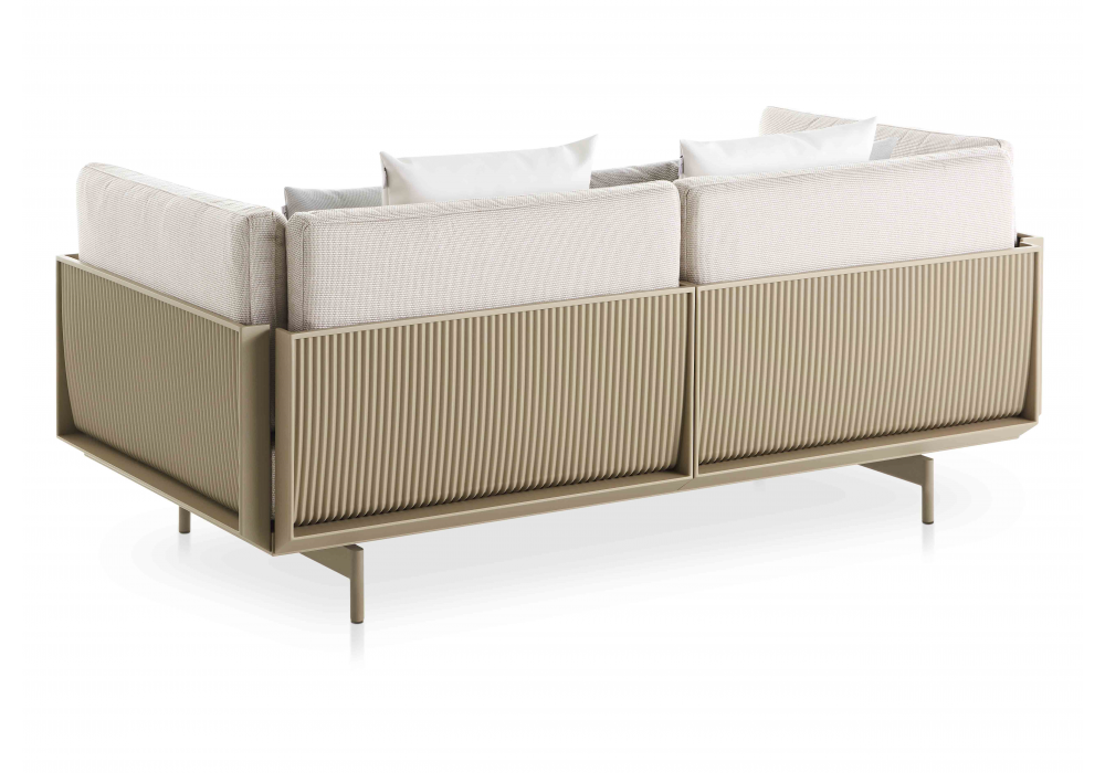 Onde diseñado por Luca Nichetto para Gandia Blasco es un sofá de diseño realizado en aluminio pintado en polvo con chapa ondulada de aluminio pintado en polvo. Asiento y respaldo de gomaespuma de poliuretano reutilizable y fibra de poliéster con tejido hidrófugo. Cojín/almohada de fibra de poliéster con tejido hidrófugo. Disponible en diferentes medidas y acabados.
