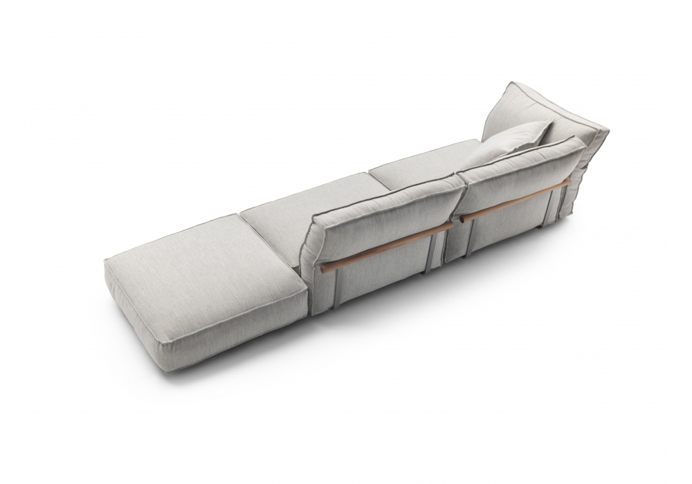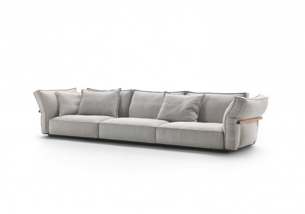 Camelot diseñado por Antonio Citterio para Flexform es un sofá modular de exterior con estructura de acero inoxidable con recubrimiento en polvo y panel laminado compacto, los cojines son de espuma de poliuretano y fibra de poliéster revestidos con tejido protector. Las telas son desenfundables. Disponible en diferentes acabados.