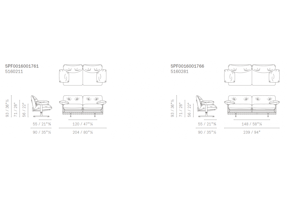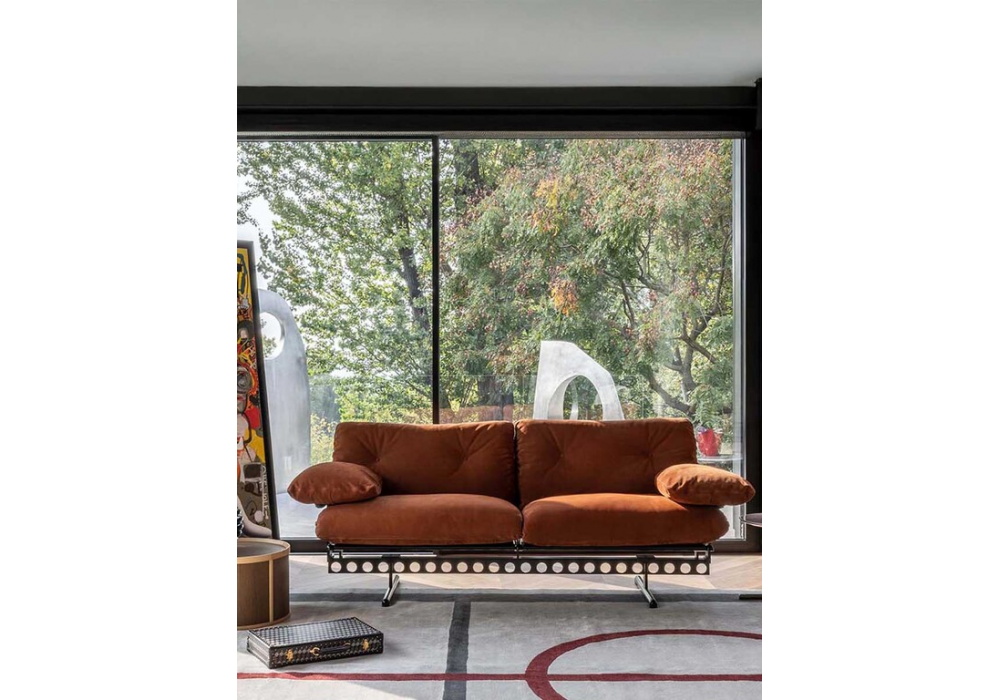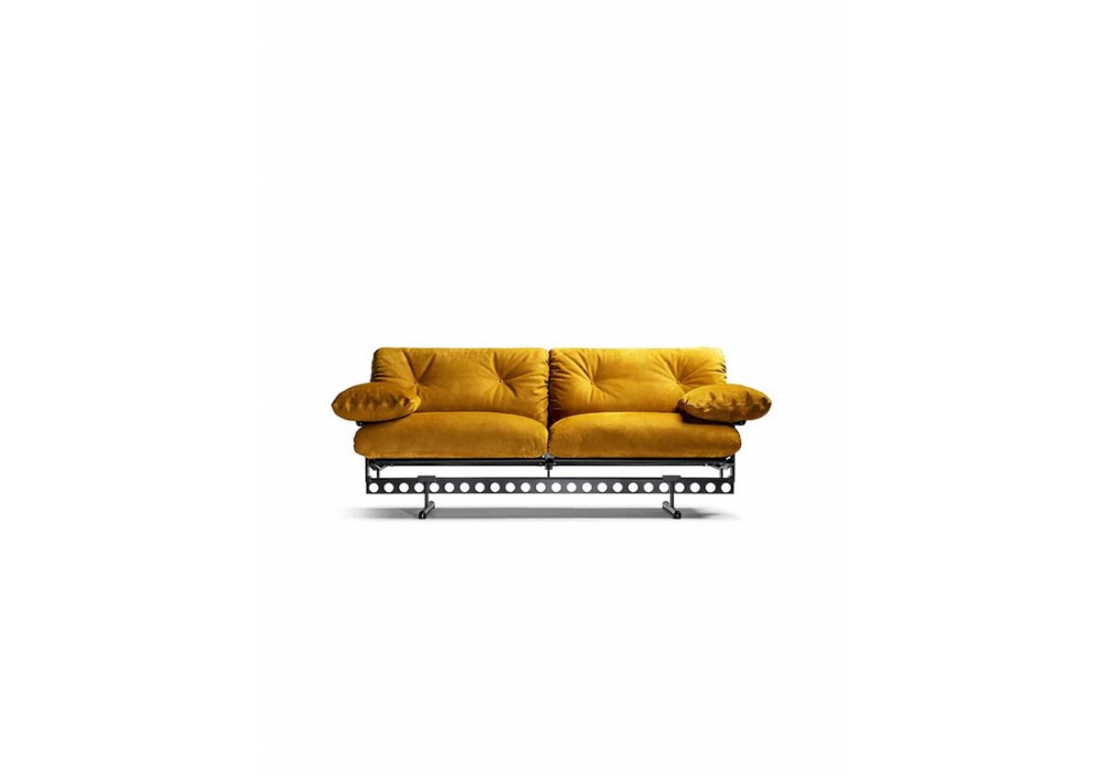 Ouverture diseñado por Pierluigi Cerri para Poltrona Frau es un sofá con estructura en perfiles de acero color gris aluminio metalizado que descansan sobre una viga de acero perforado. Los pies se deslizan a lo largo de la viga, por lo que el posicionamiento relativo es flexible. Muelle del asiento obtenido con una suspensión elástica en lona de nylon y caucho vulcanizado. Los cojines del asiento, del respaldo y del reposabrazos están acolchados con plumón de ganso con una inserción estabilizadora de espuma de poliuretano. La tapicería está disponible en piel Pelle Frau®.