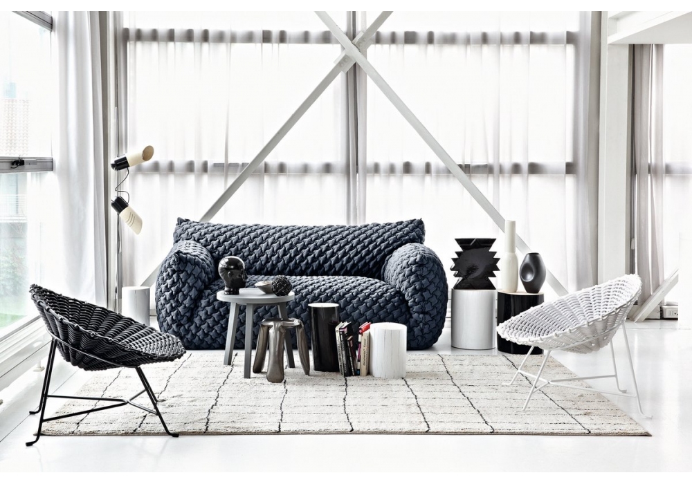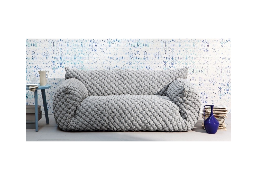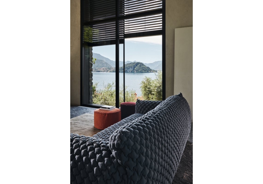 Nuvola diseñado por Paola Navone para Gervasoni es un sofá realizado con acolchado de espuma de poliuretano cubierto con edredón acolchado con plumón de ganso y copos de fibra de poliéster, funda desenfundable.